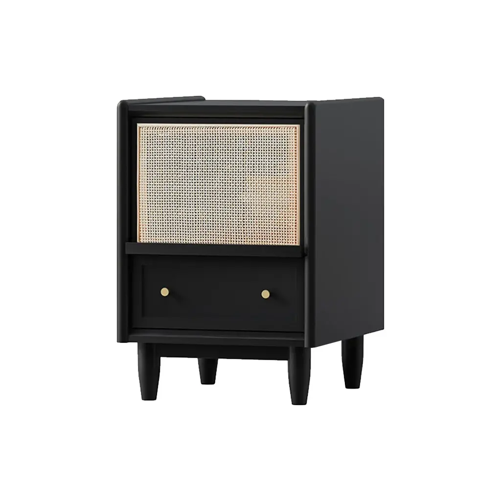 Rustic Rattan Nightstand Simple Black Bedroom With Storage Solid Wood Bedside Table