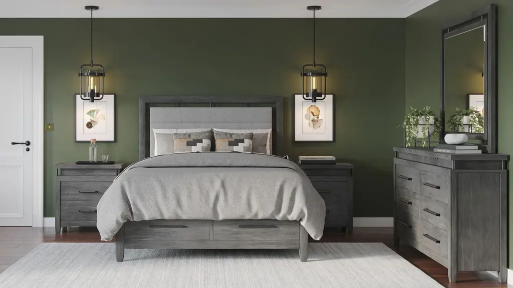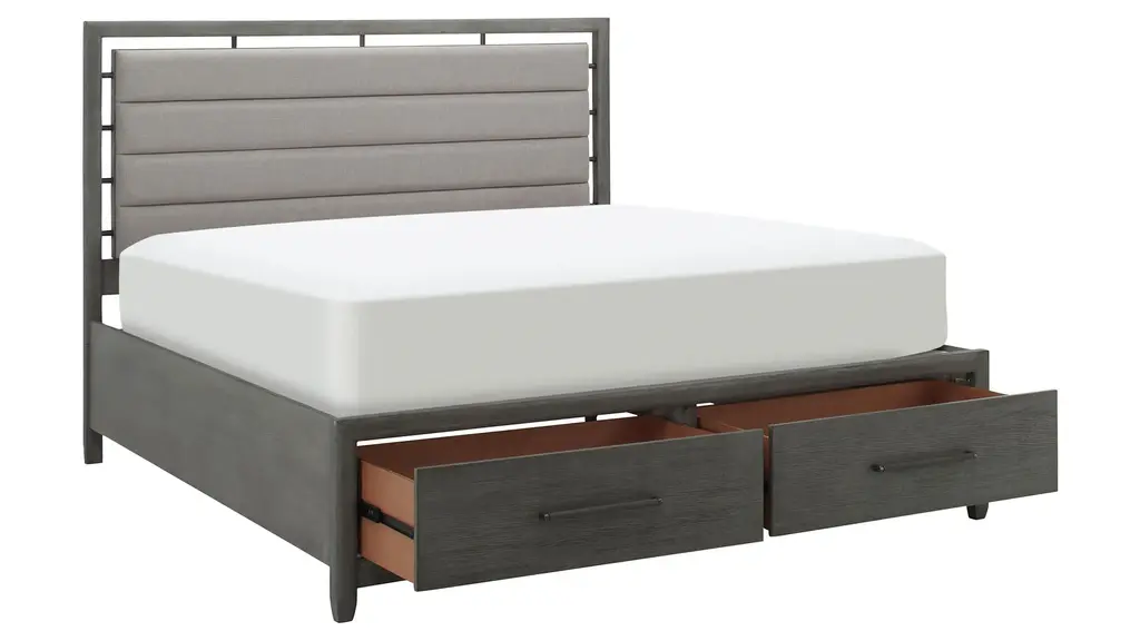 Want a truly stunning bedroom ensemble? The San Clemente Platform Storage Bed can give you just that. This modern piece features two footboard drawers for convenient storage, as well as an upholstered headboard for lovely looks and comfort.