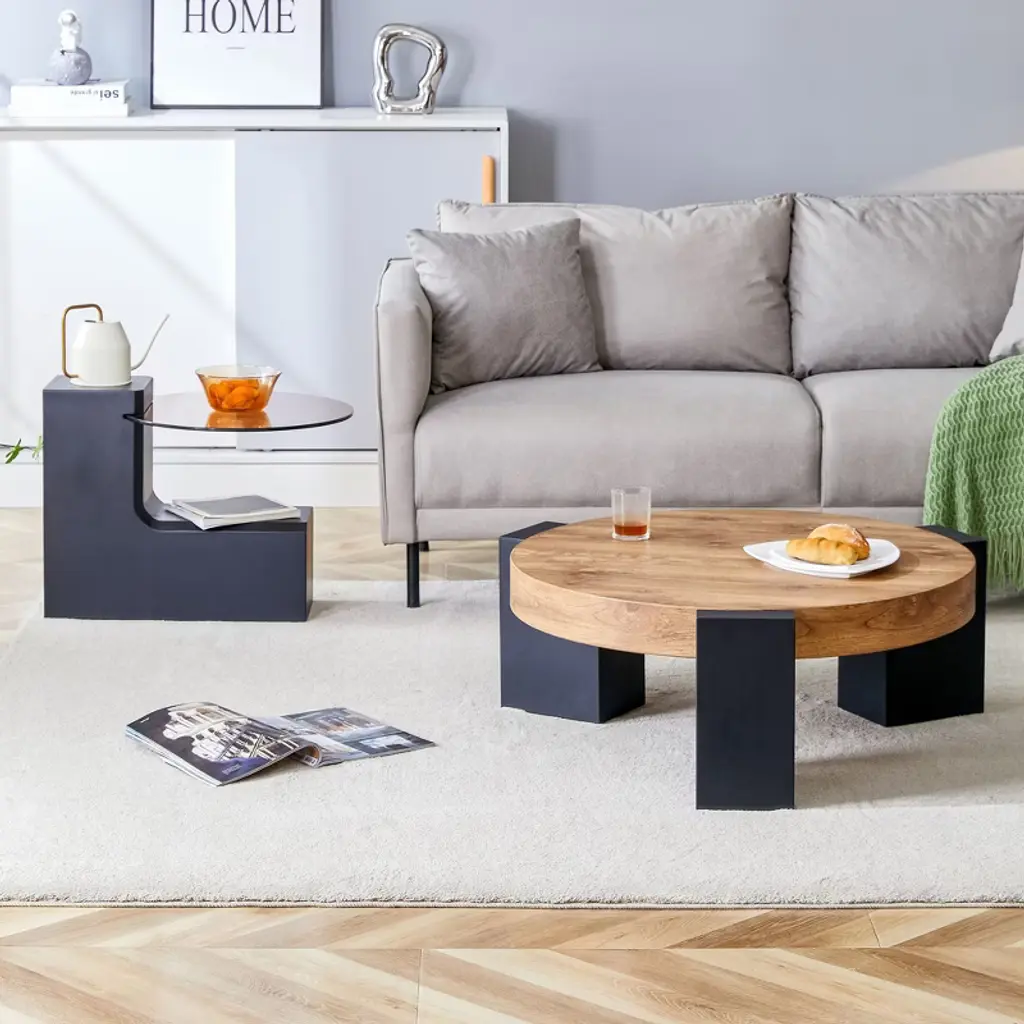 Sapphtopaz Modern 2-layer Coffee Table Center Detachable Coffee Bar Home Decor With Wood Grain And Storage Space For Living Room, Bedroom, Black