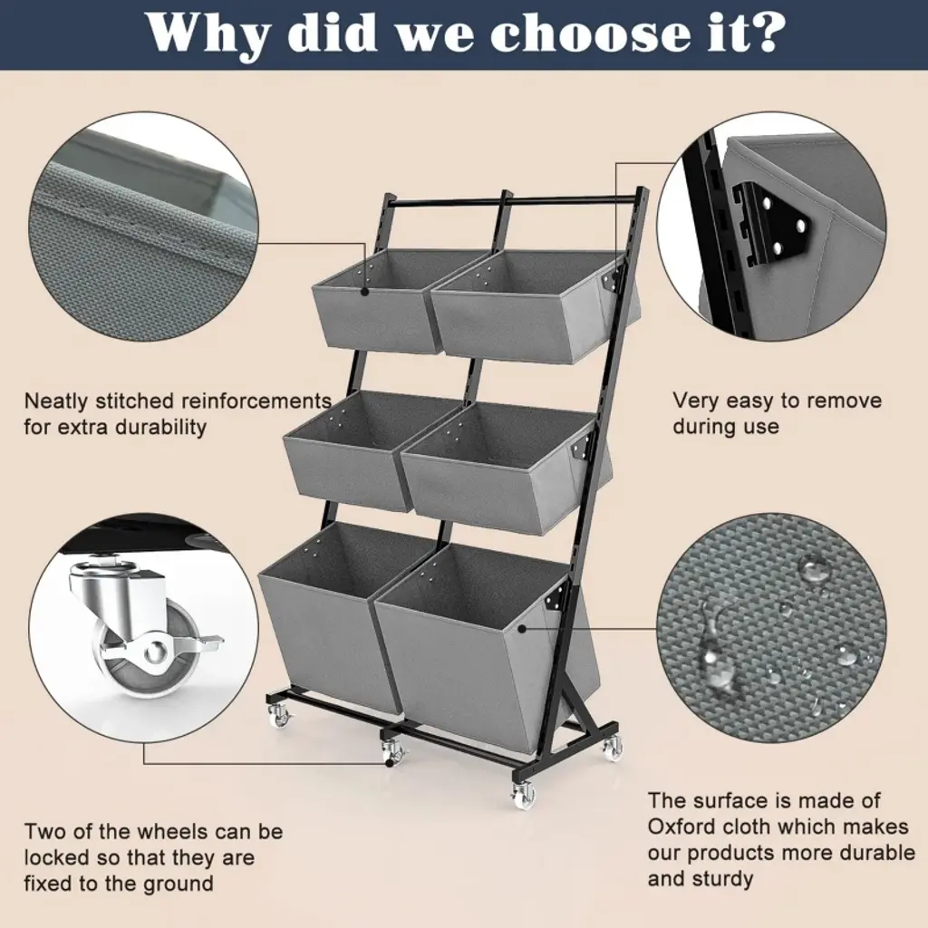 SEVOBAL 6-grid laundry sorter simplifies home organization—separate dark/light clothes or other items in its large-capacity compartments. The stainless steel frame and durable fabric bags are lightweight yet sturdy, fitting bedrooms, laundry rooms, or bathrooms. Detachable bags let you carry laundry directly to the washer. It doubles as storage for toys, groceries, or bedding, protecting items from scratches. Easy to maintain (wipe dust, avoid dampness), it keeps spaces tidy and stylish.