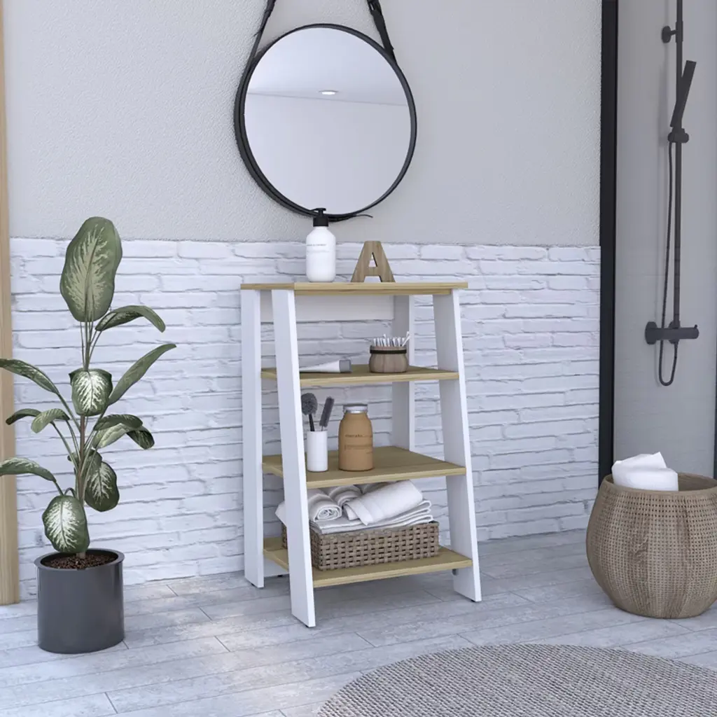 SEVOBAL Utility Storage Shelves 4 Shelf Linen Cabinet with Adjustable Shelf is a practical and stylish storage solution for your bathroom or bedroom. The open shelves provide easy access to essentials, while the adjustable shelf offers flexibility to accommodate items of various sizes. Built with sturdy legs for reliable support, this cabinet blends seamlessly into any room with its light oak and white finish, adding both functionality and elegance to your space.