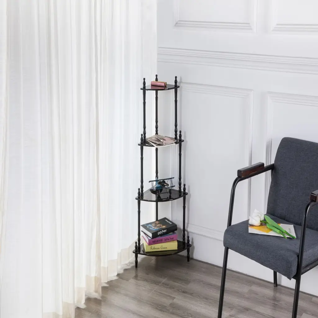 SEVOBAL Utility Storage Shelves 4 Tier Wooden Corner Shelf combines classic design with functional storage. Four shelves provide space for books decor and more while keeping your space organized. Crafted from durable composite wood it ensures reliable support and long-lasting use. The dark cherry finish adds warmth and elegance to your home. Simple assembly makes setup quick and easy, letting you enjoy a tidy space in no time.