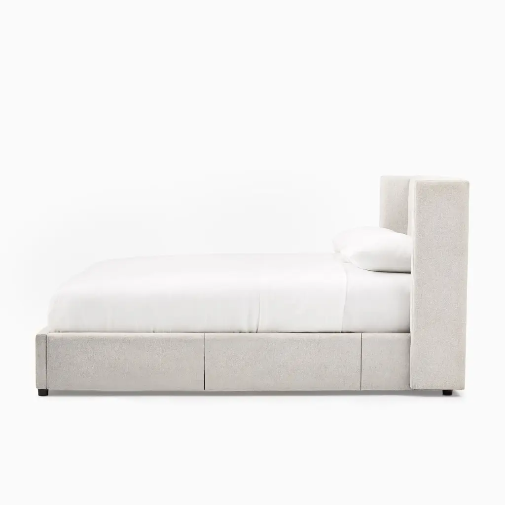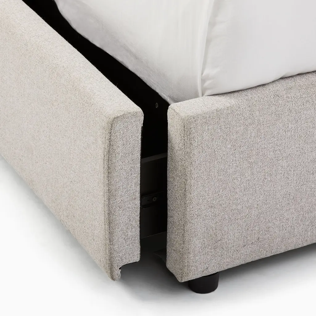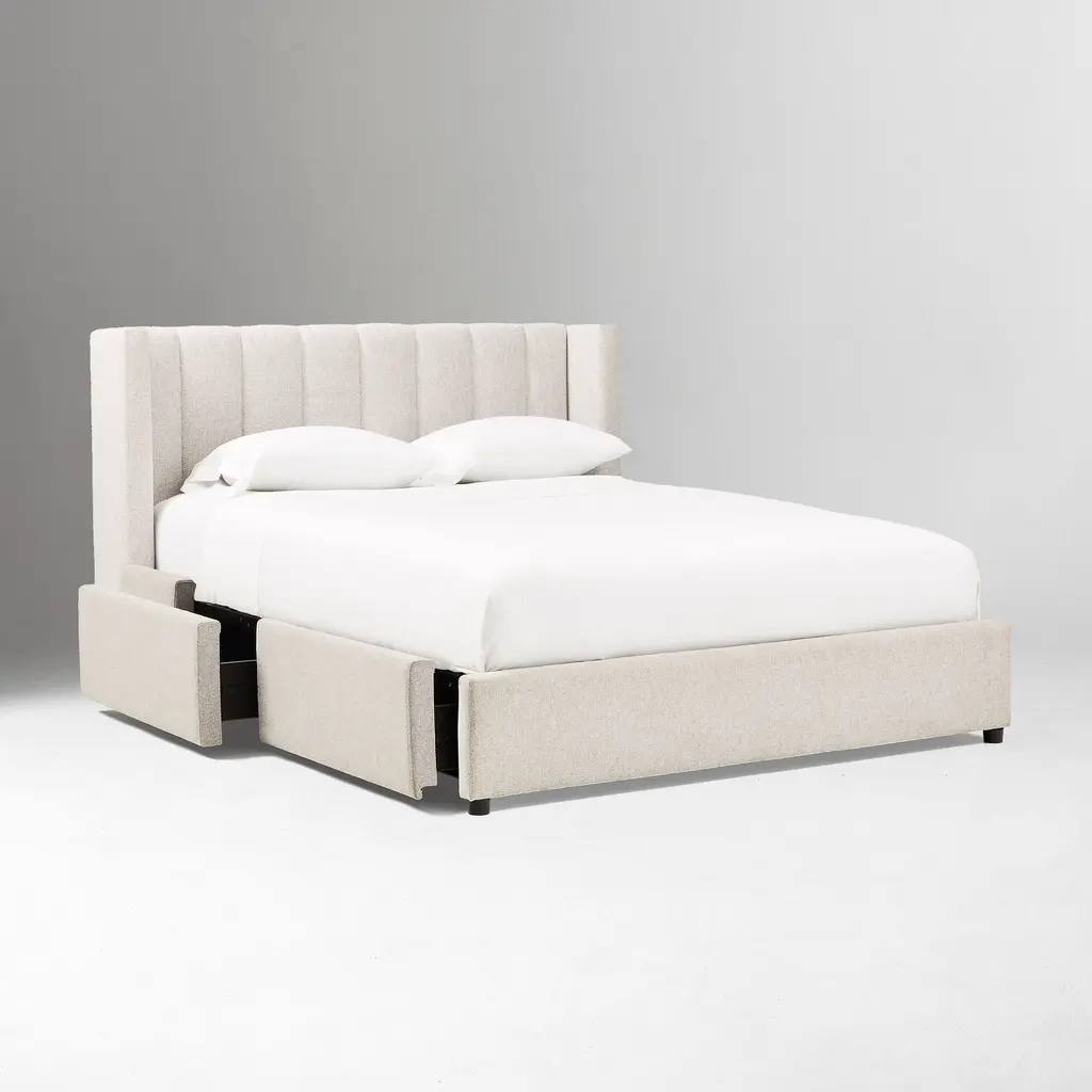 Designed by you: pick the height, fabric and tufting. Headboard with a soft turn at each end. Side drawers for discrete functional storage. Contract Grade for unmatched durability.