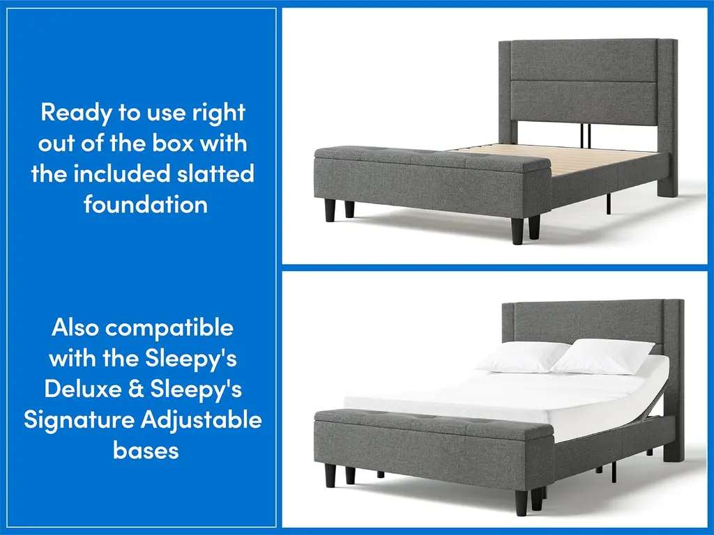 Signature Upholstered Platform Bed Frame With Bench Storage