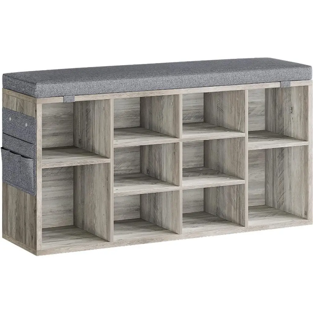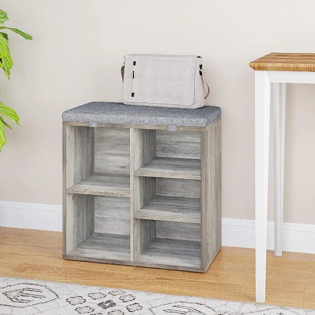 Maximize your space with this small shoe storage bench featuring five cubbies and a padded seat cushion. Designed for entryways, bedrooms, living rooms, or hallways, it combines seating with practical storage, keeping your home organized and functional. Adjustable shelves accommodate different shoe types, while the soft, breathable cotton-linen cushion provides comfortable seating with a removable, washable cover. Constructed from durable MDF board, the bench supports daily use and holds shoes up to size 44. Easy to assemble and maintain, it is a versatile, stylish, and functional addition to any space.