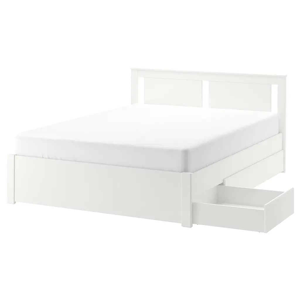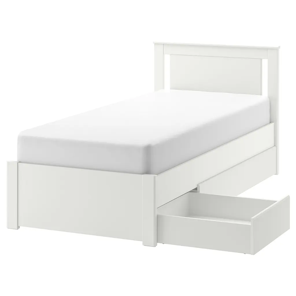 SONGESAND Bed frame with 2 storage boxes - white Twin. This classic bed frame will look great with your choice of textiles and bedroom furniture. You can even complete the look with other products from the SONGESAND series. Adjustable bed sides allow you to use mattresses of different thicknesses.