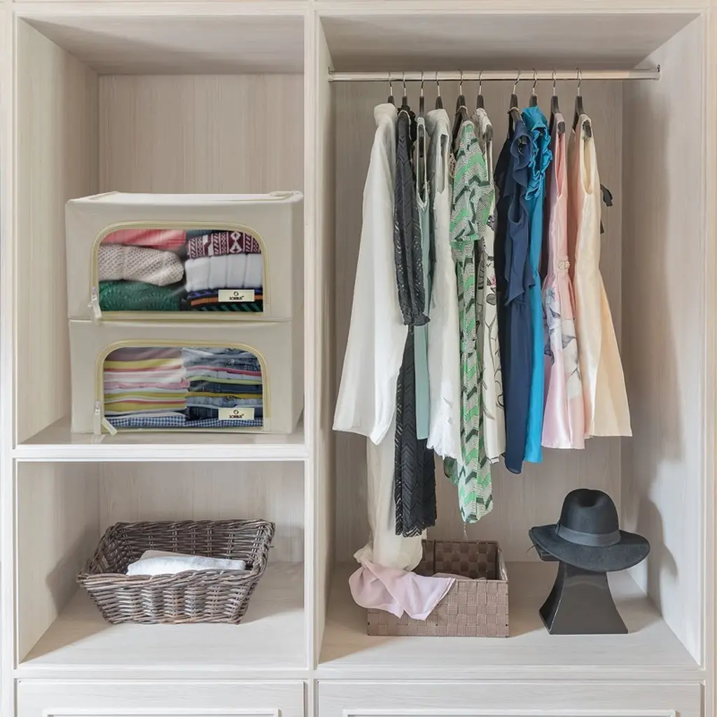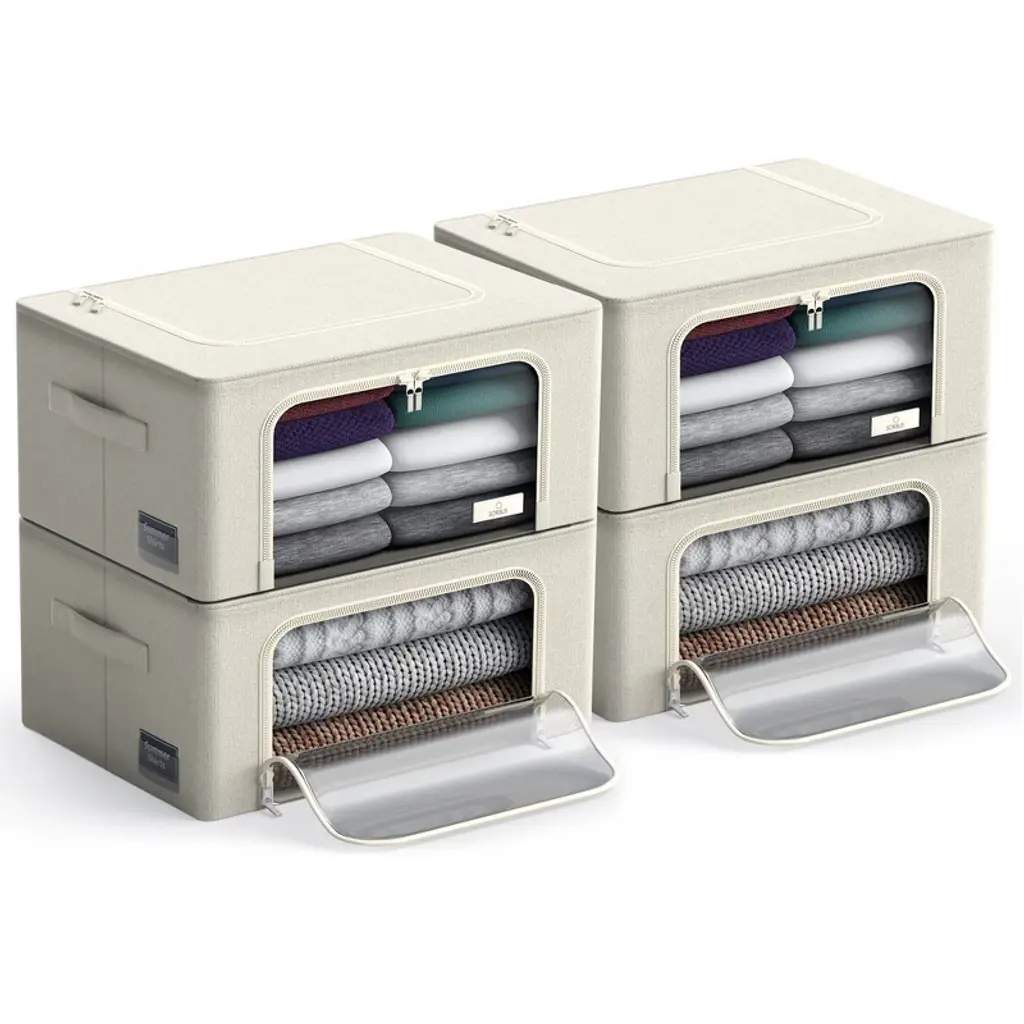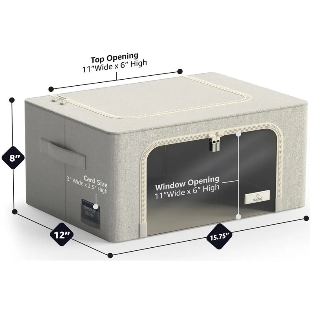 Sorbus 4 Pack Small Foldable Storage Box - Metal Frame, Oxford Fabric, Large Window & Handles - Organization For Bedroom, Linens & Clothes (Beige)