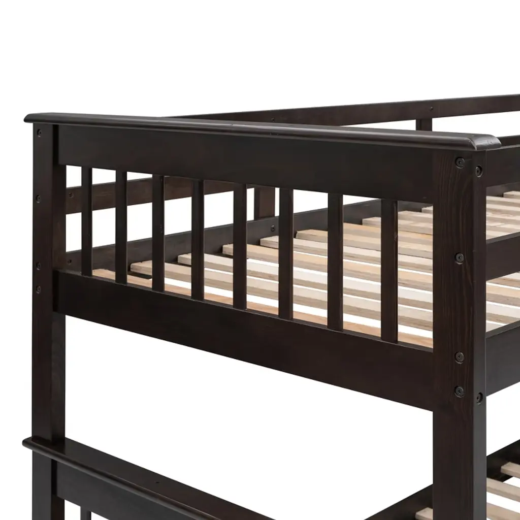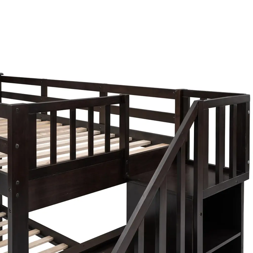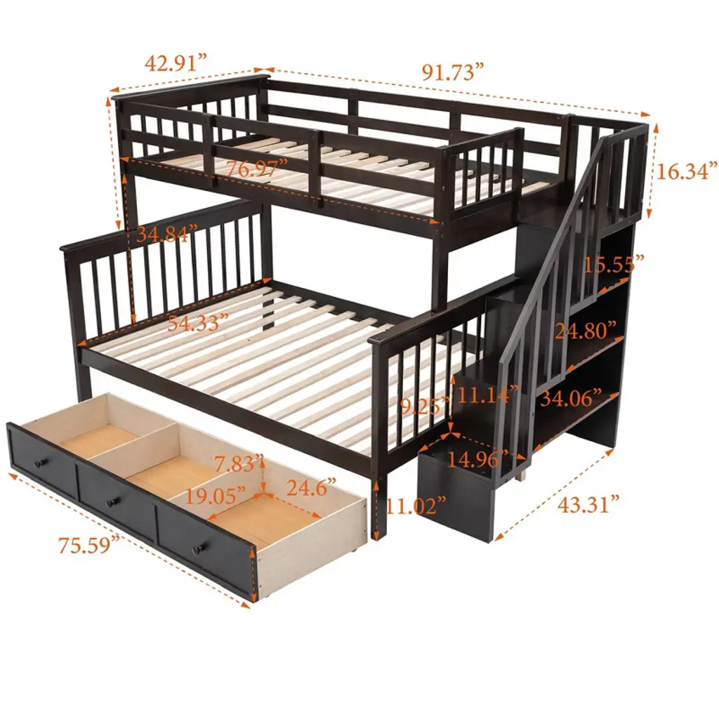 Stairway Twin Over Full Bunk Bed For Kids, Bunk Bed Frame With Storage Drawer And Guard Rail For Bedroom Dorm, Espresso