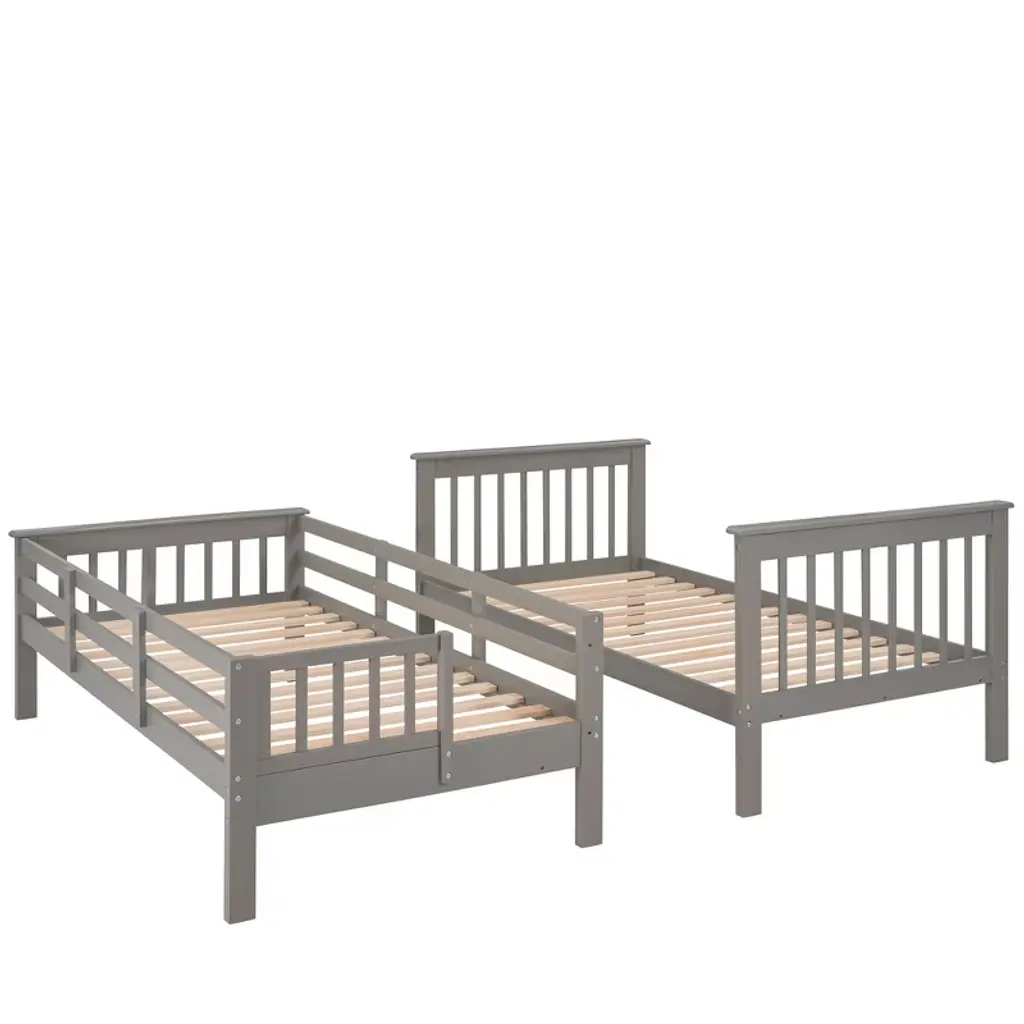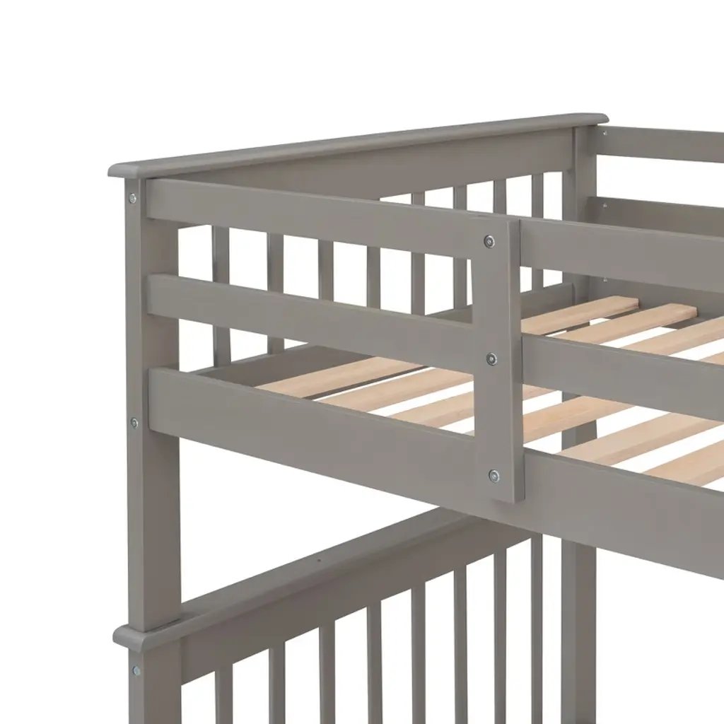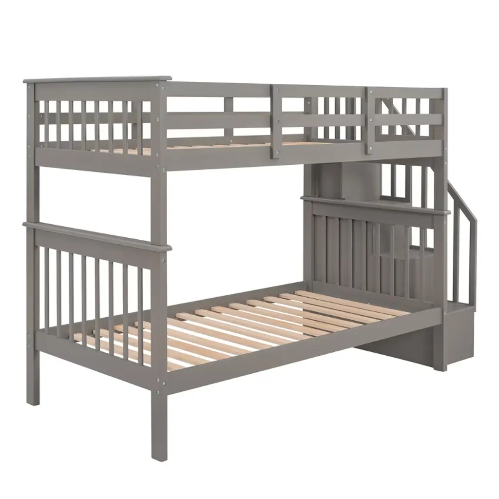 Stairway Twin Over Twin Bunk Bed For Kids, Bunk Bed Frame With Storage And Guard Rail For Bedroom Dorm, Gray