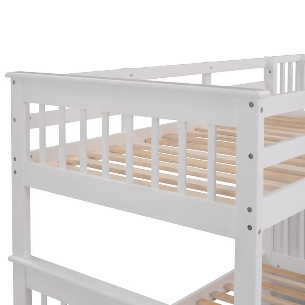 Stairway Twin Over Twin Bunk Bed For Kids, Bunk Bed Frame With Storage Drawers And Guard Rail For Bedroom Dorm, White