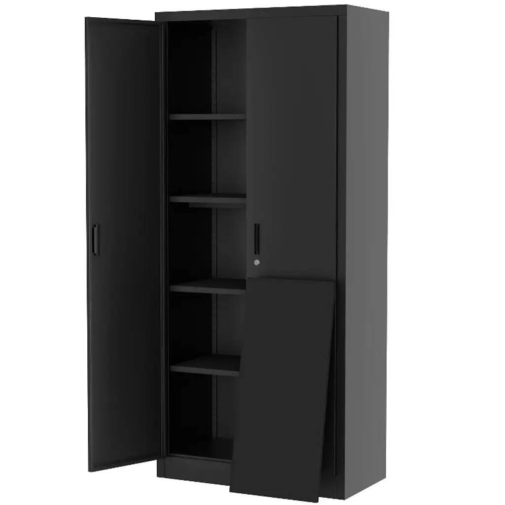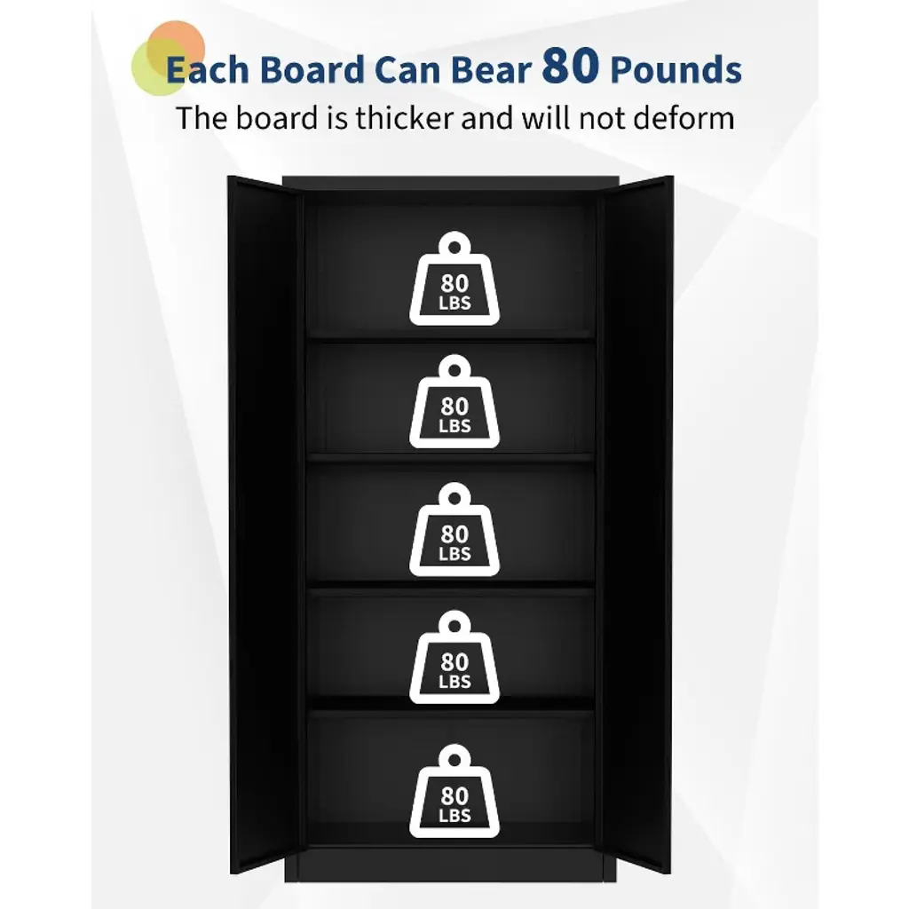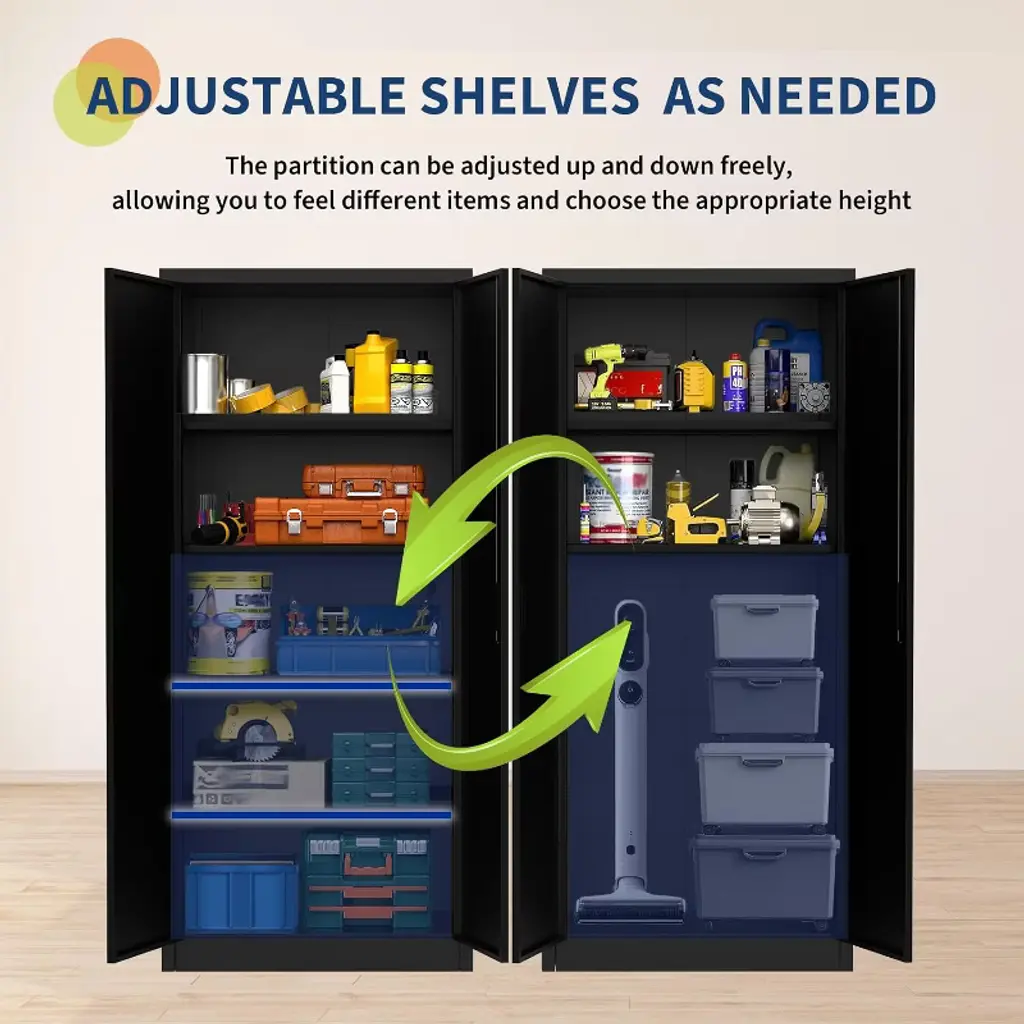 Storage Metal Cabinet 71" with Doors and 4 Shelves Adjustable 4 Adjustable Feet and Lock Tall Storage Cabinet for Pantry Garage Craft Bedroom Office Shop (Black)
