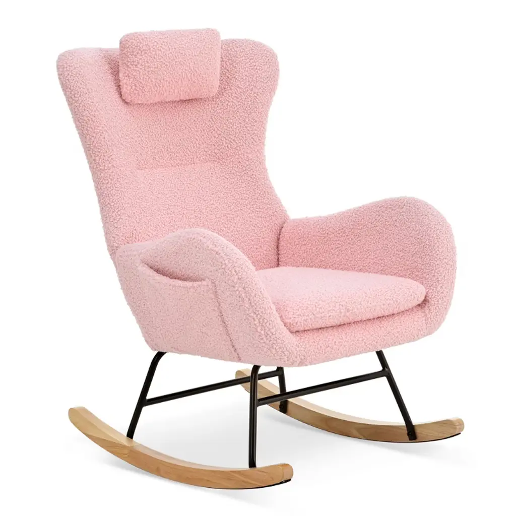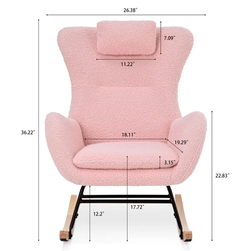 Tiramisubest Rocking Chair With Storage, Cushions & Armrests, Ergonomic All-season Lounge Recliner For Bedroom, Living, Pink