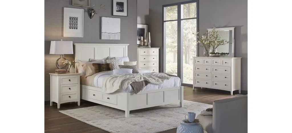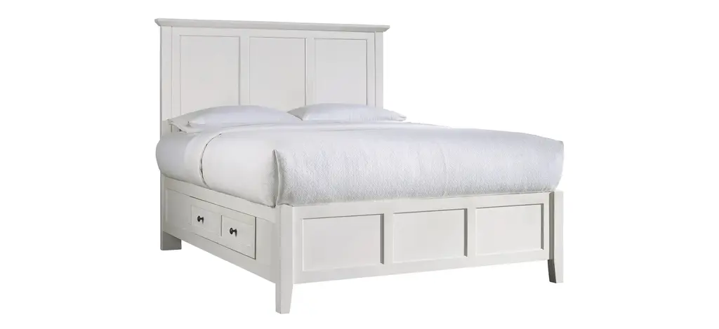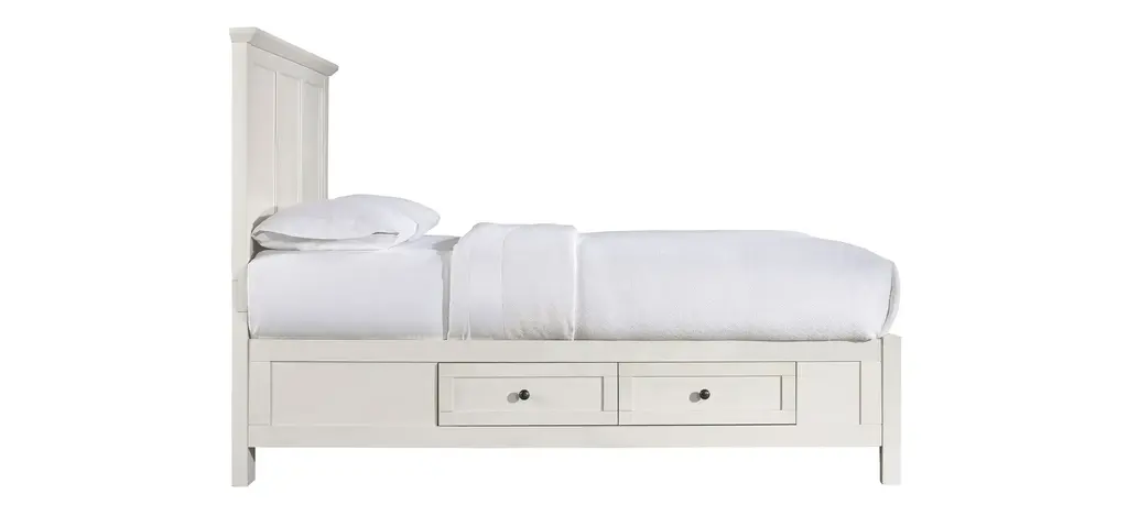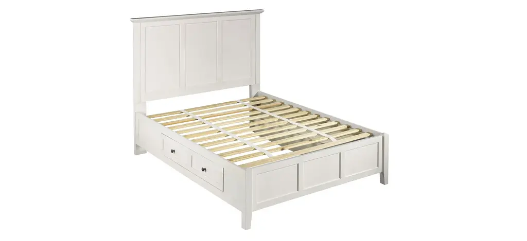 With, clean lines and functional appeal, the Tompkins queen storage bed is a fresh take on classic Shaker style. Crafted from solid mahogany frames, the storage bed features a simple, framed panel design with reverse bevel floating tops. The storage bed includes 2 drawers on each side and ships with a platform bed slat kit designed for use without a foundation. As with any classic shaker design, Tompkins's beauty is in its function and ease. Bed features hook-on rail fittings for long-term durability.