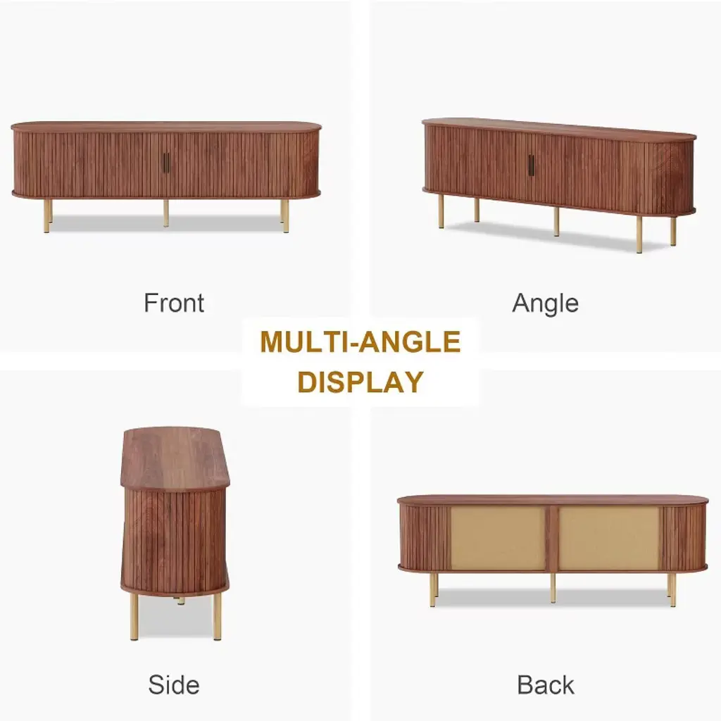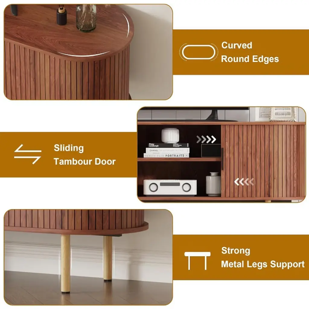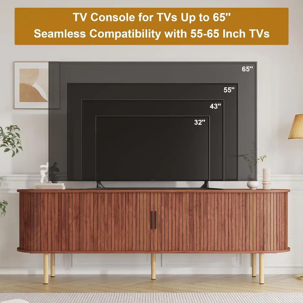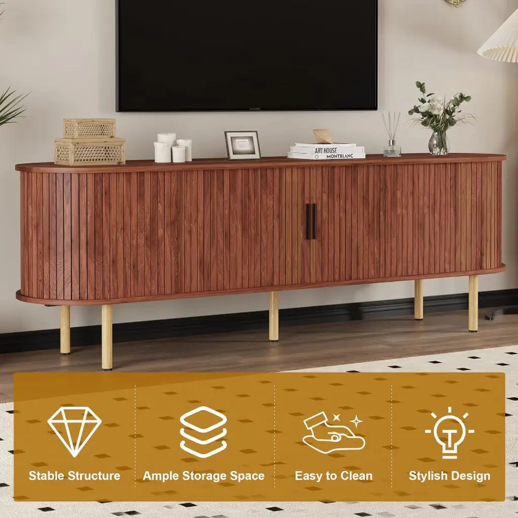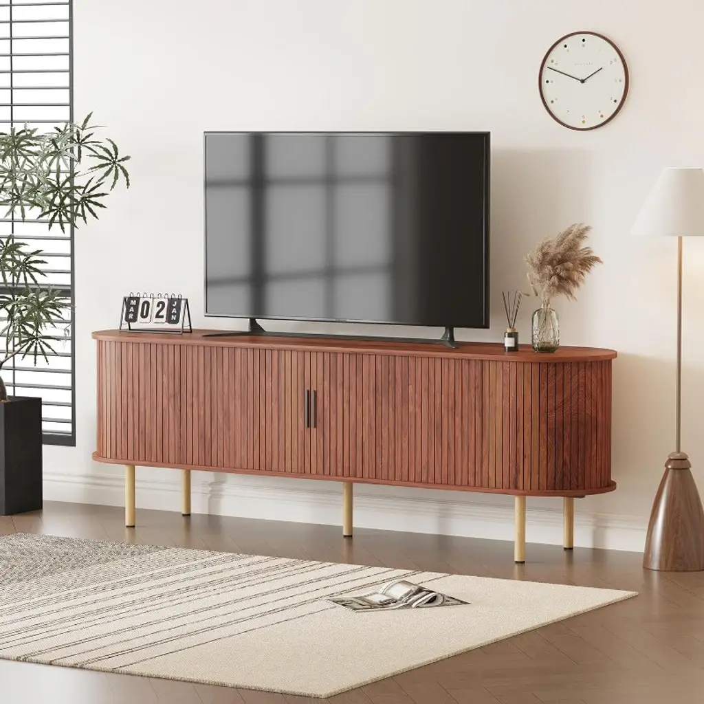 TV Stand, Modern TV Console Table with Storage Compartment and Sliding Door, Gaming Entertainment Center with Cabinet for Living Room, Bedroom, Office. The subtly rounded corners add softness to the rectangular silhouette, making this a versatile piece for modern, retro, or Scandinavian interiors.