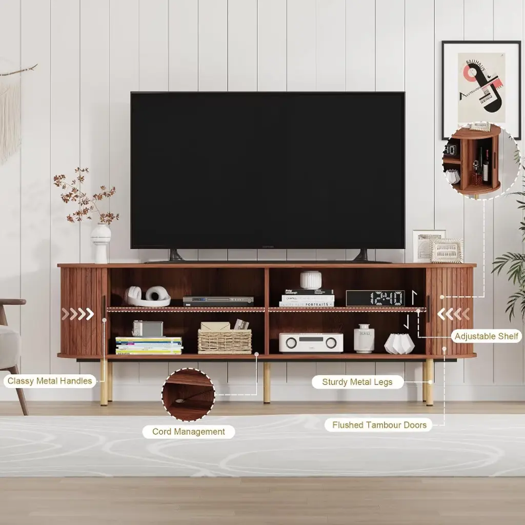 Tv Stand, Modern Tv Console Table With Storage Compartment And Sliding Door, Gaming Entertainment Center, For Living Room, Bedroom, Office, Walnut