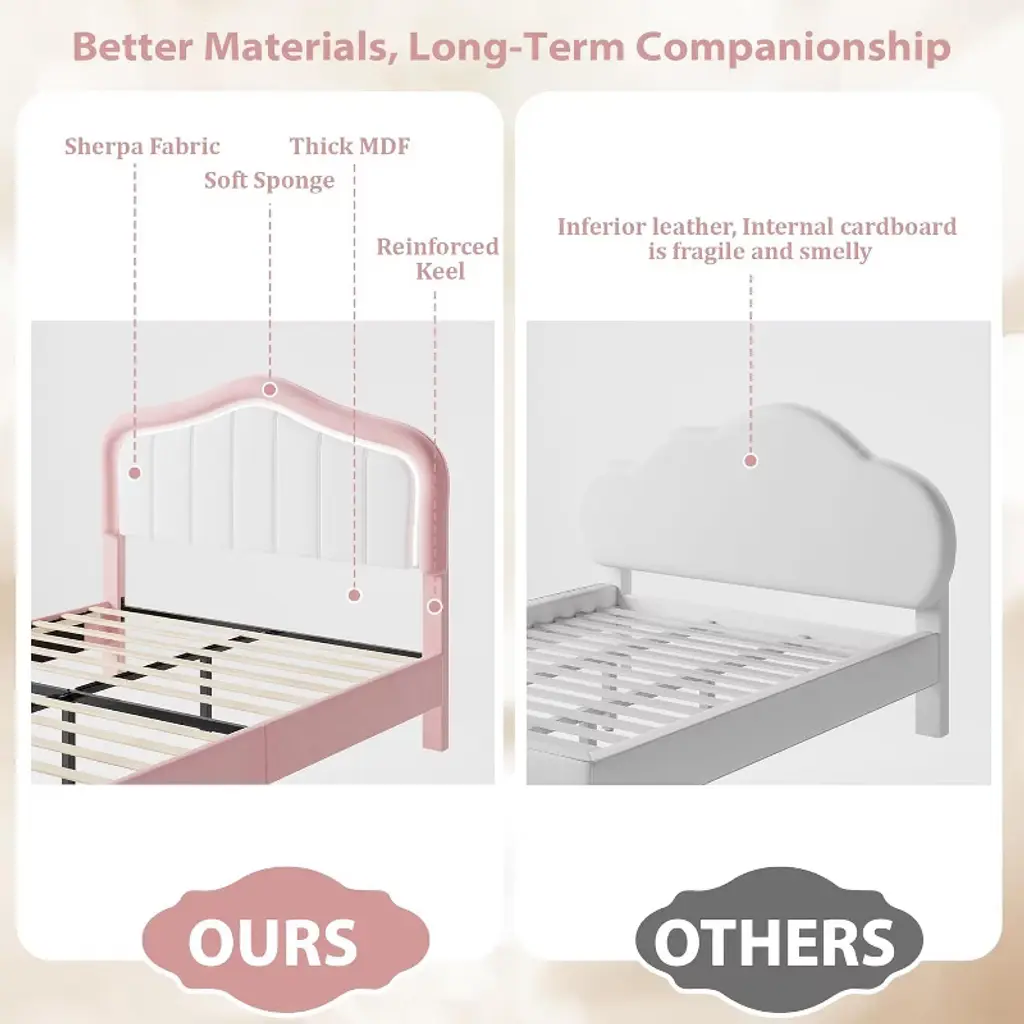 This upholstered bed features built-in smart LED light strips on the headboard, easily controlled via an app, remote, or adapter. With over 16 million colors, 20+ preset lighting effects (brightness, flash, wave), and various modes (music, mic, time mode), you can create the perfect atmosphere for your bedroom to match your mood and style. Whether you desire soft, warm lighting for reading or lively colors for a party, this smart RGB LED bed caters to all your needs.