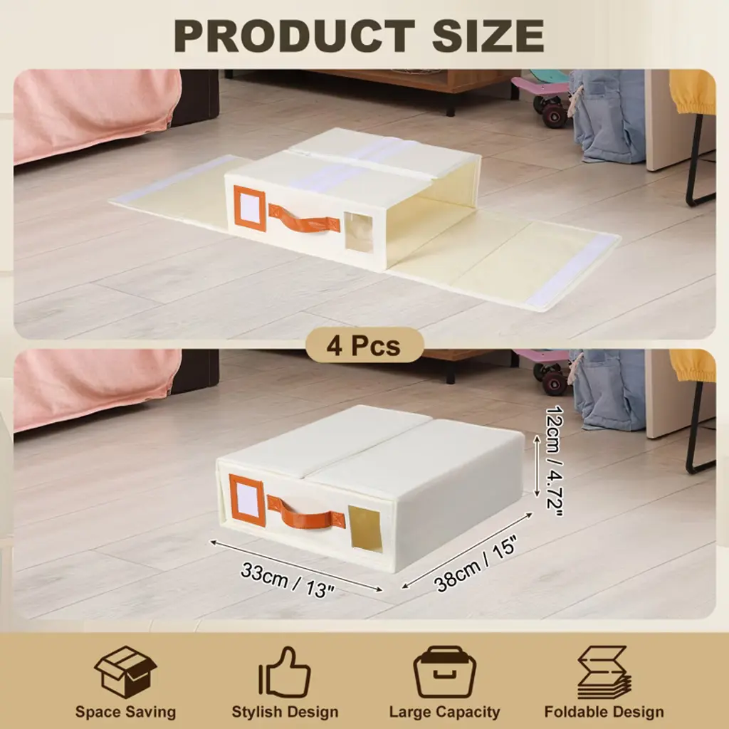 Unique Bargains Fabric Bed Sheet Organizers And Storage With Pu Handle 4 Pcs Beige