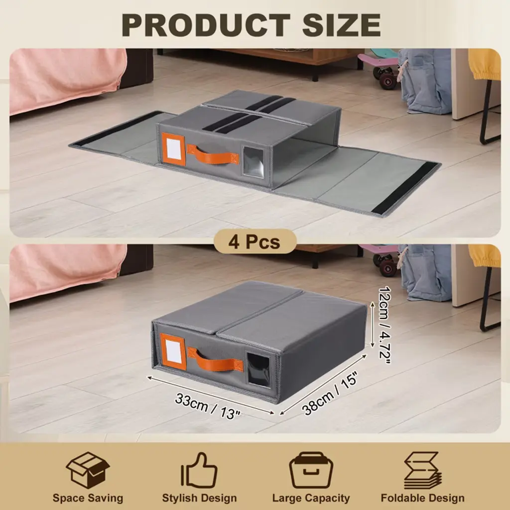Unique Bargains Fabric Bed Sheet Organizers And Storage With Pu Handle 4 Pcs Gray