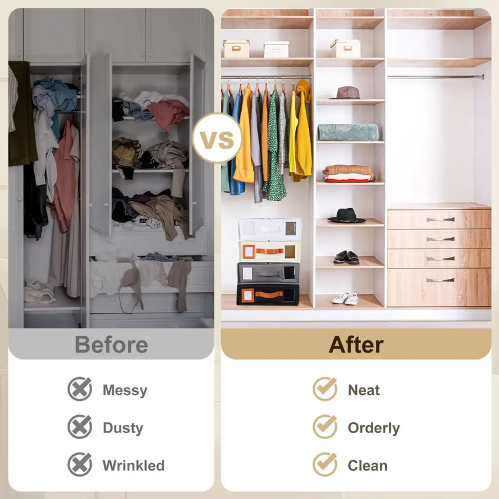 This sheet organizer is made of sturdy Oxford cloth (not thin non-woven fabric) and features reinforced handles for added durability. It's made of corrugated plastic (not cardboard) to resist moisture and deformation. It has ample space for a king/queen sheet set, a duvet cover, and two pillowcases. A transparent window makes it easy to identify sheet colors. The included labels allow you to quickly mark your sheets by size or style for easy access. Easy to fold and use: Simply fold the sheet set in the middle, zip it up, close the door, and attach the labels.