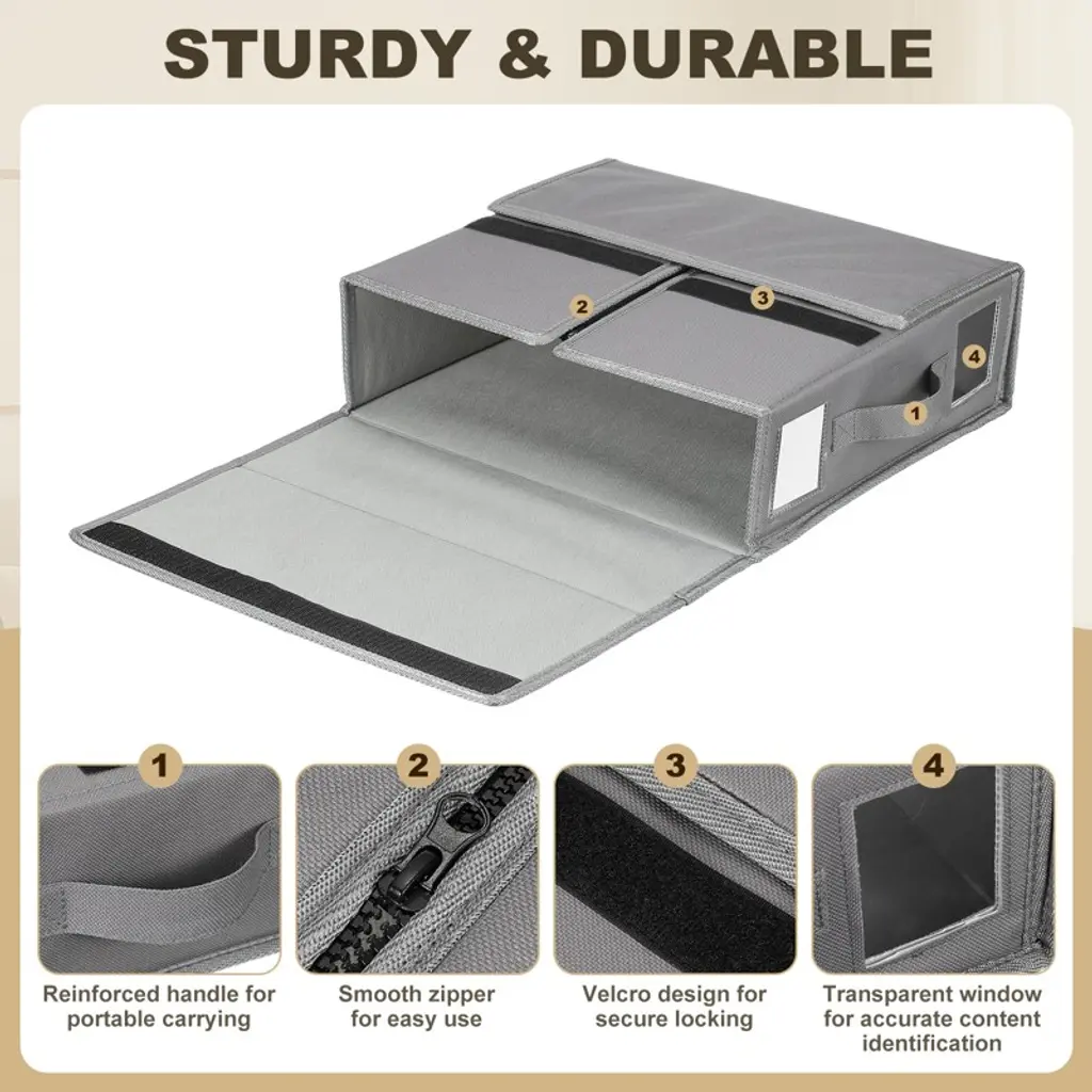 This sheet organizer is made of sturdy Oxford cloth (not thin non-woven fabric) and features reinforced handles for added durability. It's made of corrugated plastic (not cardboard) to resist moisture and deformation. It has ample space for a king/queen sheet set, a duvet cover, and two pillowcases. A transparent window makes it easy to identify sheet colors. The included labels allow you to quickly mark your sheets by size or style for easy access. Easy to fold and use: Simply fold the sheet set in the middle, zip it up, close the door, and attach the labels.