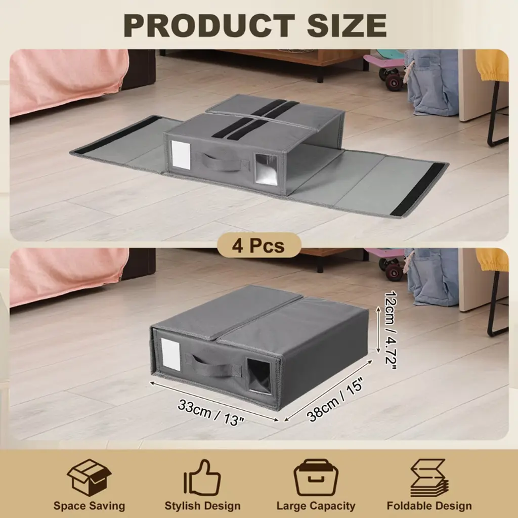 Unique Bargains Oxford Fabric Bed Sheet Organizers And Storage With Handle 4 Pcs Gray