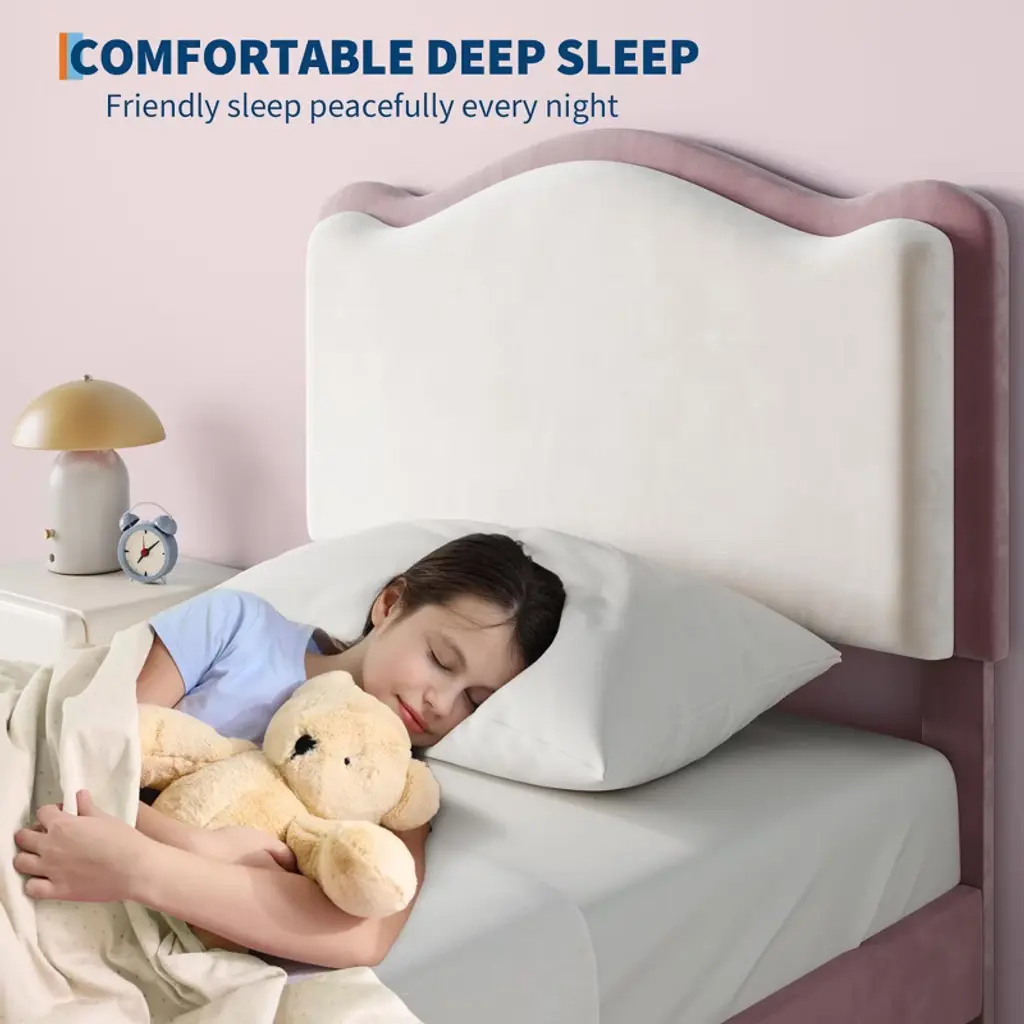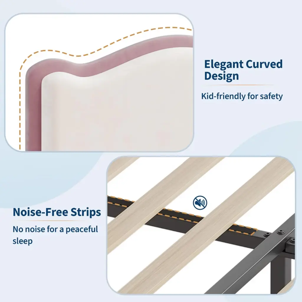 Upholstered Twin Bed Frame with Storage Drawer & Scallop Headboard, Princess Twin Size Platform Bed Frames for Kids Girls, Wooden Slats Support, No Box Spring Needed