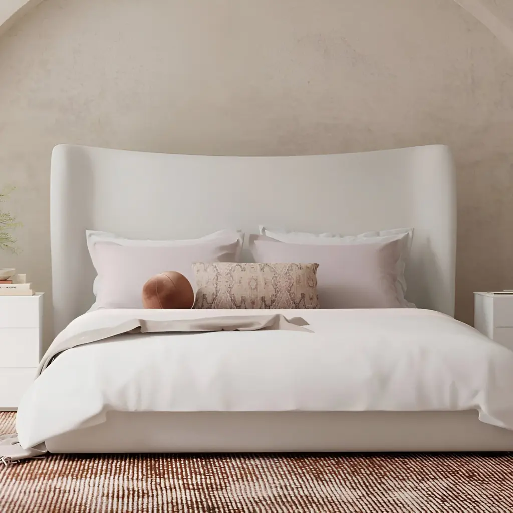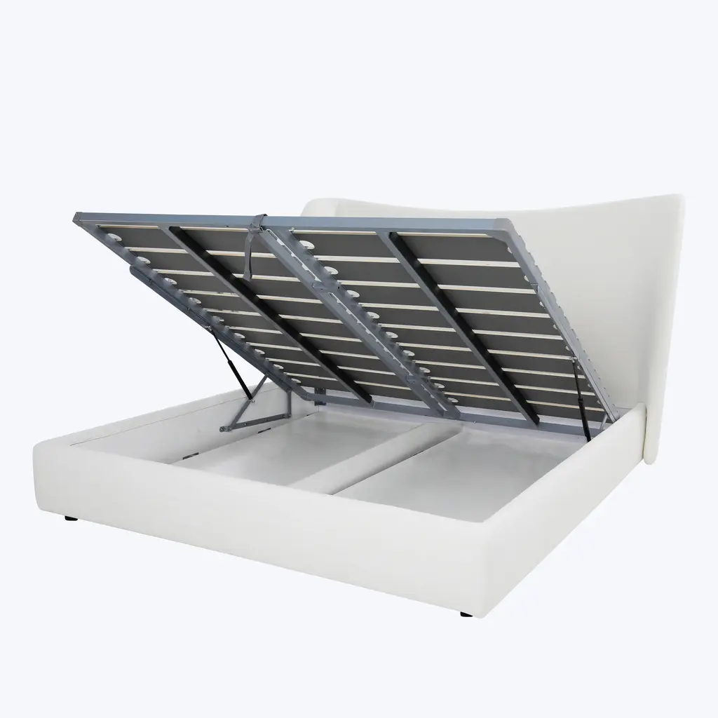 A warm foundation for your sleep sanctuary, this cozy Uptown Curve Lift Storage Bed is the perfect balance between style and function with its curved headboard and storage capabilities. The padded headboard provides a soft place to lounge against while the stylish teddy upholstery follows the silhouette of the whole bed to complete the cohesive comfortable look and feel. This storage bed is ideal of smaller apartments and studios as the bed lifts up to accommodate extra bedding or seasonal wear discretely within the frame rather than needed extra space for a pullout drawer. A lovely addition to any master bedroom or guest room.
