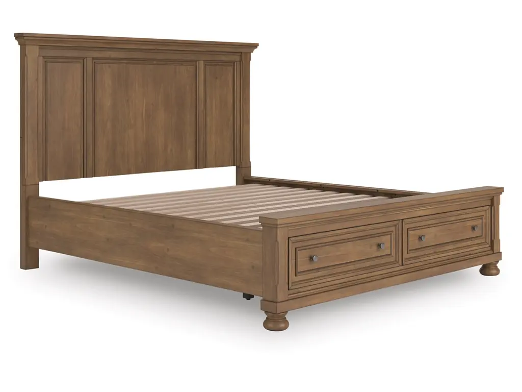 A relaxed take on casual traditional design, the Vandenmore California king panel storage bed strikes a comfy pose with a classic sensibility. Its timeless design and chestnut brown wood tone create a welcoming retreat tailored to your laid-back lifestyle. Metal knobs in an aged pewter color subtly dress up footboard drawers packed with storage possibilities. Now there’s a bed with staying power.