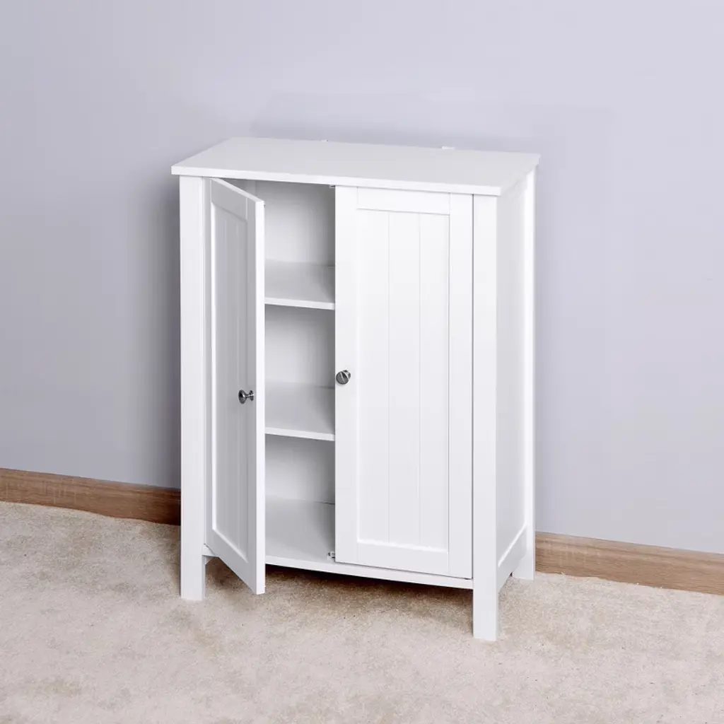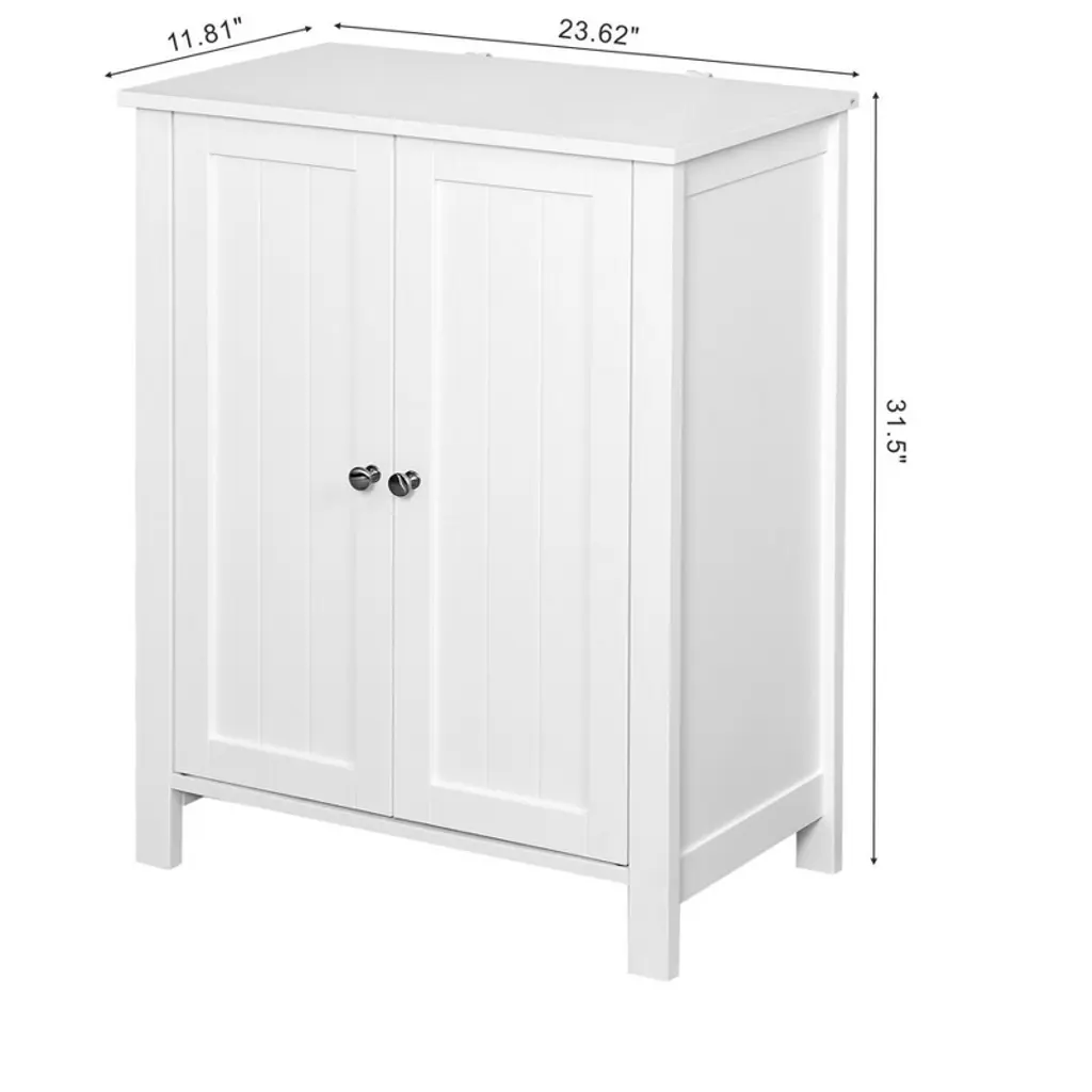 PREMIUM QUALITY: Assembled by water proof fiberboard and rust - proof hardware fittings. Finished with water proof surface coating & medium density fiberboard (MDF) - a dense, warp-resistant engineered wood. High-quality material withstands the humidity of the bathroom. Even in the damp bathroom can be durable for long-term use. MULTIFUNCTIONAL: This storage cabinet with three shelves is available in your bathroom, laundry, pantry, living room, corridor and any other space to hold towels, toilet articles, snacks, shoes and other items. CUSTOMIZABLE: Safely store necessities or sundries of various sizes with an easily adjustable internal shelf. Painted white, simple design, look elegant and attractive in your home style, it serves not only as a piece of furniture, but also as a decoration in the home. LARGE STORAGE CAPACITY: Dimension: 23. 6"Lx11. 8"Wx31. 6"H. 2 interior shelves with 3 adjustable heights meet various storage needs: the closed storage room with 2 doors keeps your stuff away from dust. Three built-in storage cubbies keep your toothbrush, soap, or toiletries at arm's reach without taking up little floor area.