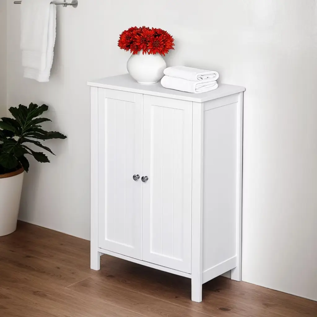 Vanirror Floor Storage Accent Cabinet With Double Doors, Adjustable Shelves, And Elegant White Finish For Bathroom, Living Room, Or Bedroom