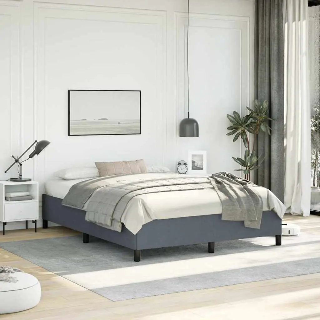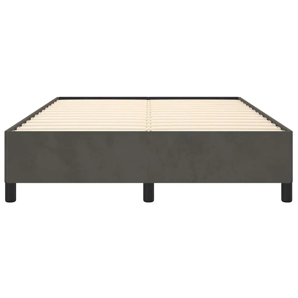 This contemporary velvet bed frame gives your bedroom a stylish lift, with its chic dark grey fabric and sleek lines. It's designed to look good and be practical too, with a comfy height of 13.8 in that makes it easy to get in and out – a perfect mix of elegance and purpose for modern living. Storage Solutions: Plenty of under-bed storage helps keep your bedroom tidy, perfect for stashing away extra linens and seasonal clothes.Durable Materials: Built with a solid frame from engineered wood, ensuring strength and stability for up to two without sacrificing comfort.Soft Velvet: Wrapped in luxuriously soft velvet fabric, the bed frame adds a warm touch to your bedroom, making it a snug retreat.Simple Setup: Ideal for DIY fans, this frame comes with easy assembly instructions, so you'll be set up in no time.Modern Look: The dark grey shade and matte finish fit in well with any contemporary decor, giving your home a classy vibe.
