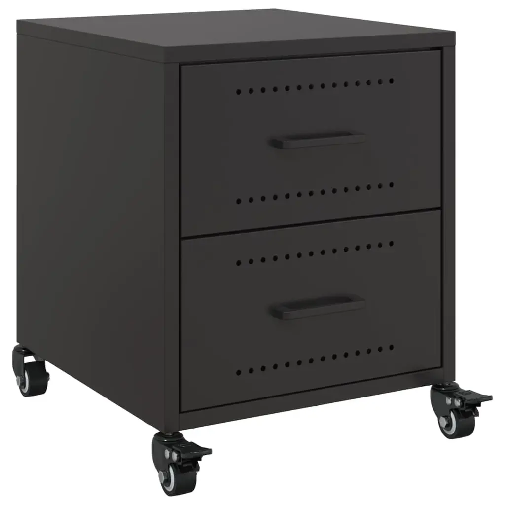 This modern black bedside cabinet set is the perfect mix of style and function, adding a sleek touch to any bedroom. Built from resilient cold-rolled steel, these compact cabinets are all about smart storage, while the matte black finish blends seamlessly with your existing decor, making them spot on for both modern and classic styles. Space-Saving Design: Perfect for small spaces, these bedside cabinets fit neatly beside any bed without cramping the room.Durable Construction: Made from cold-rolled steel, these cabinets are built to last, ready for everyday use.Easy Mobility: Wheels help you glide them around easily for cleaning or changing up your setup.Stylish Appearance: The matte black finish adds a modern flair, making them a chic addition to any bedroom.Functional Storage: Each cabinet has two handy drawers for stashing books, remote controls, or other night-time essentials.