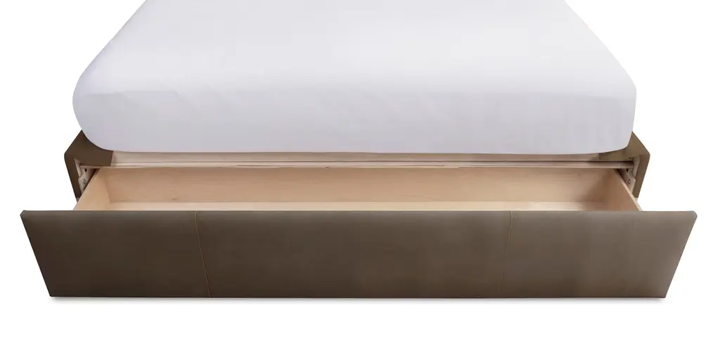 Create a bedroom of gracious wonder and twilit mystery, anchored by the Vienna Leather Upholstered Storage Bed. Dressed in your choice of rich Bassett leather, the Vienna storage bed delivers subtle neo-classic elegance while making the most of your space. As you sleep under its curving camelback headboard, your bed linens or seasonal clothing are stowed out-of-sight in under bed drawers. Amplify your aesthetic even further with additional detailing, like tufting and nailhead trim, offered in-store. The Vienna is available in 5 sizes, from Twin to California King.