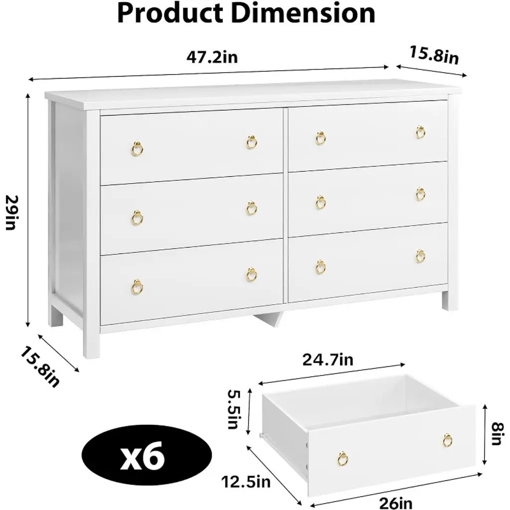 White Modern 6-drawer Dresser Extra Deep Storage,freestanding Wooden Chest Of Drawers For Bedroom