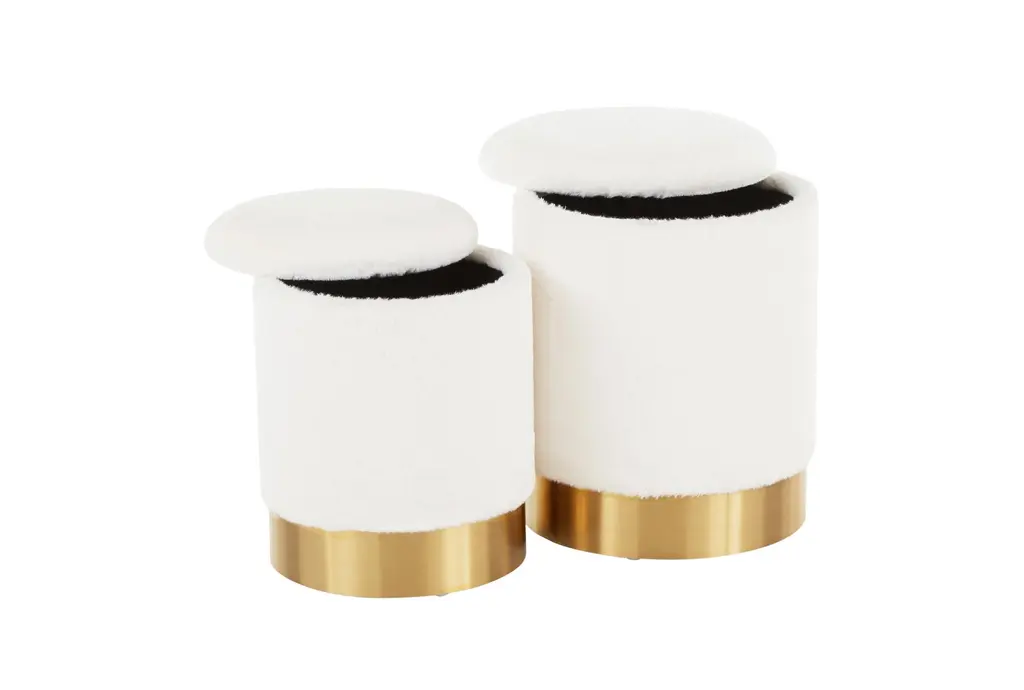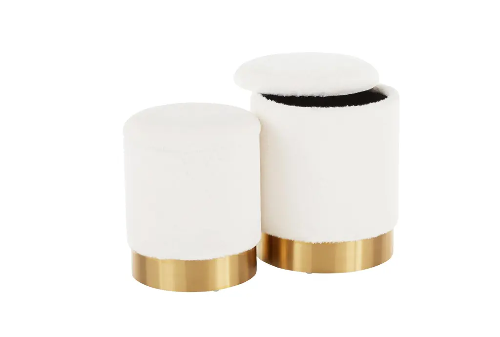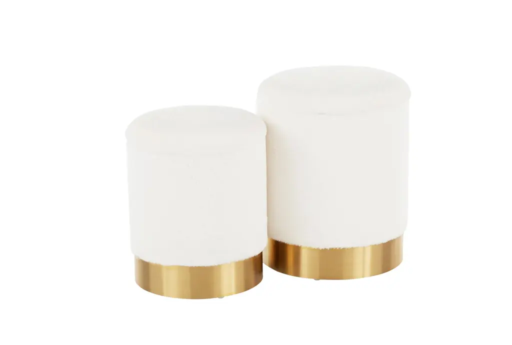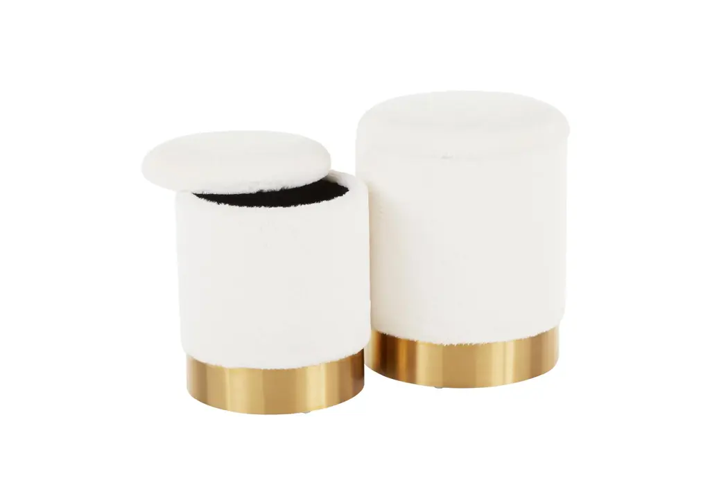 Gold Base + White Velvet Storage Nesting Stool Set | Entryway | Shoe Bench Of 2