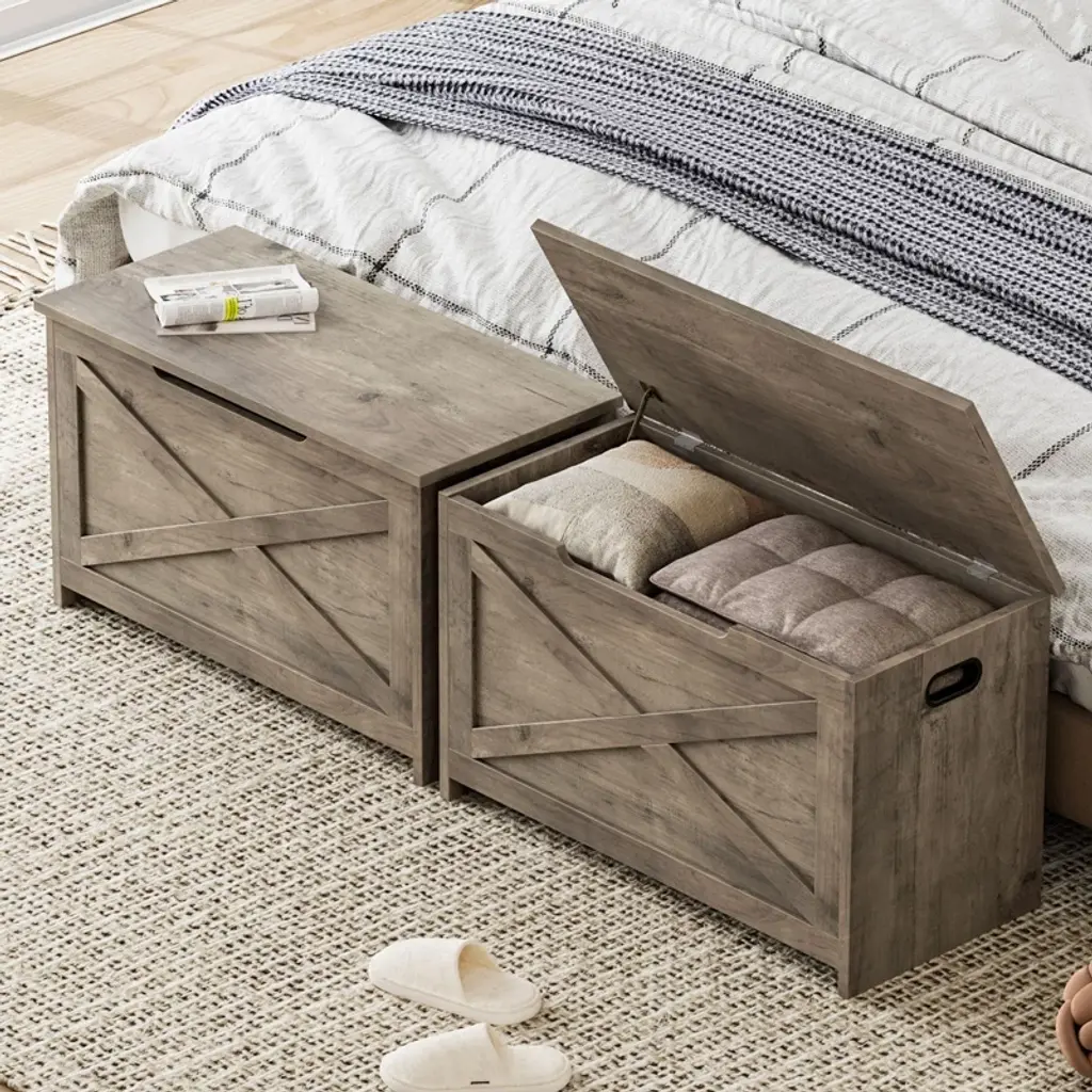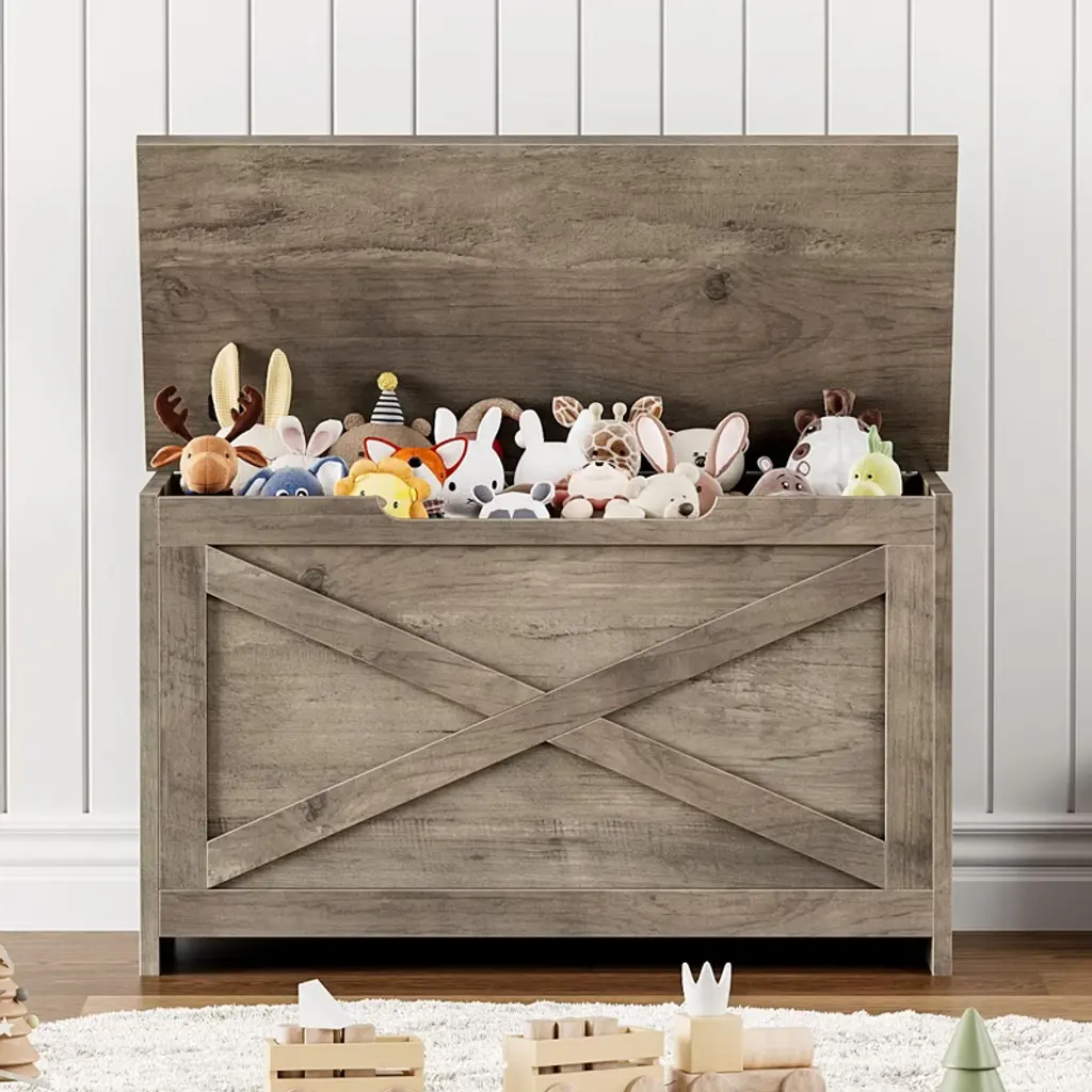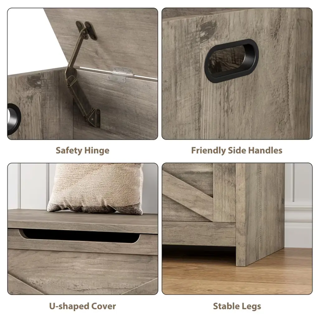 30" Storage Chest, Wooden Storage Bench With Safety Hinge, Easy Assembly, Large Toy Chest For Entryway, Living Room, Bedroom