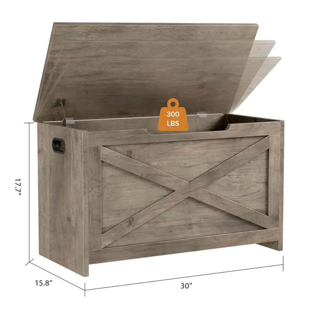 Introducing the 30" Storage Chest, a versatile wooden storage bench designed to keep your home organized and stylish. With ample storage space measuring 30" x 15.75" x 17.72", this large toy chest is perfect for storing toys, blankets, shoes, and more, helping you maintain a tidy living space. Crafted with a sturdy and durable frame, it supports up to 300 lbs, making it ideal for use as a bench or additional seating area. Assembly is fast and easy, taking just 20 minutes with clear instructions included, so you can enjoy your new storage solution without hassle.
