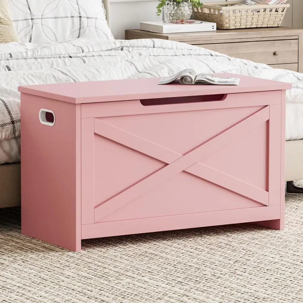 30" Storage Chest, Wooden Storage Bench With Safety Hinge, Easy Assembly, Large Toy Chest For Entryway, Living Room, Bedroom