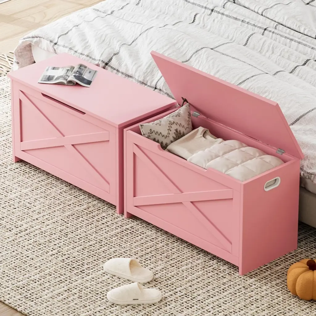 Introducing the 30" Storage Chest, a versatile wooden storage bench designed to keep your home organized and stylish. With ample storage space measuring 30" x 15.75" x 17.72", this large toy chest is perfect for storing toys, blankets, shoes, and more, helping you maintain a tidy living space. Crafted with a sturdy and durable frame, it supports up to 300 lbs, making it ideal for use as a bench or additional seating area. Assembly is fast and easy, taking just 20 minutes with clear instructions included, so you can enjoy your new storage solution without hassle.