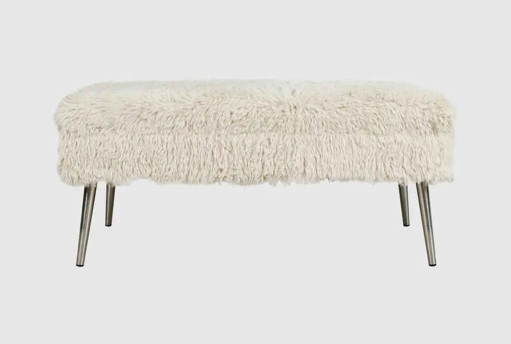 38" Huggy Modern Sand Sherpa Bedroom Storage Bench | Entryway | Shoe Bench