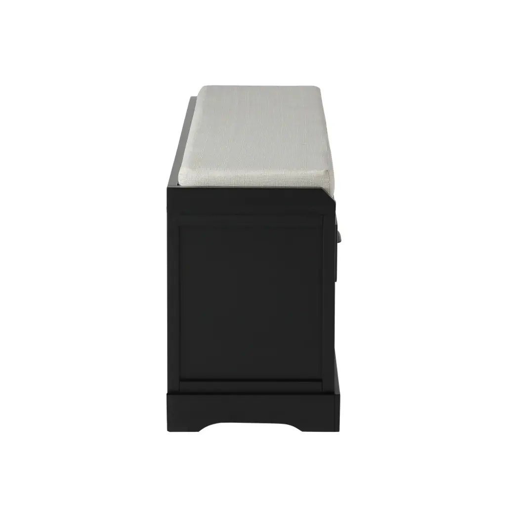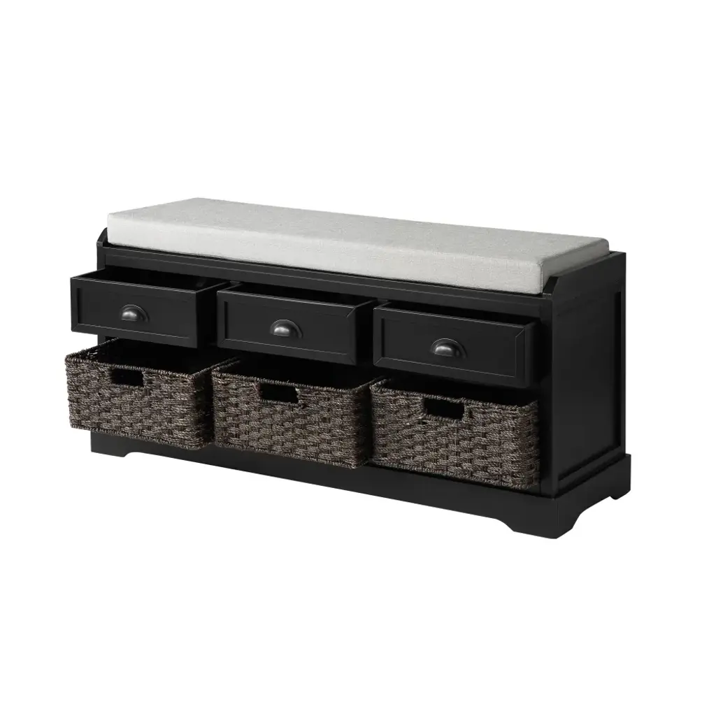 44 In. W Collection Wood Storage Bench With 3 Drawers And 3 Baskets - Black+beige