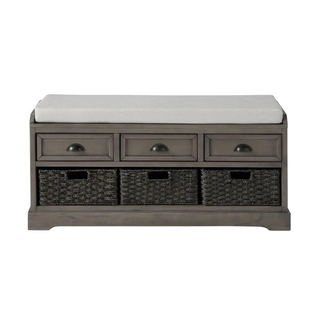 44 In. W Collection Wood Storage Bench With 3 Drawers And 3 Baskets - Grey+beige