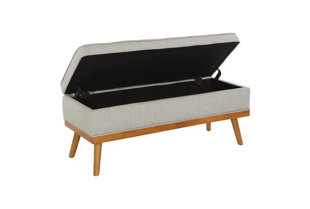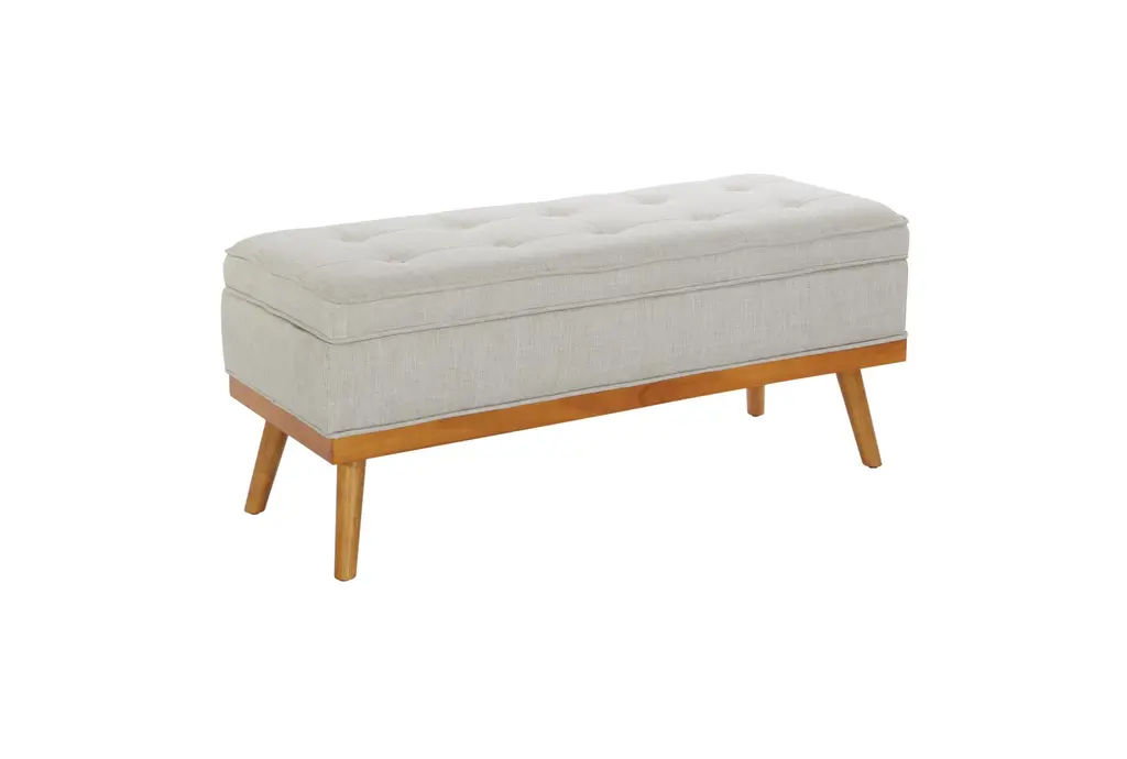 44" Modern Light Grey Button Tufted Bedroom Storage Bench