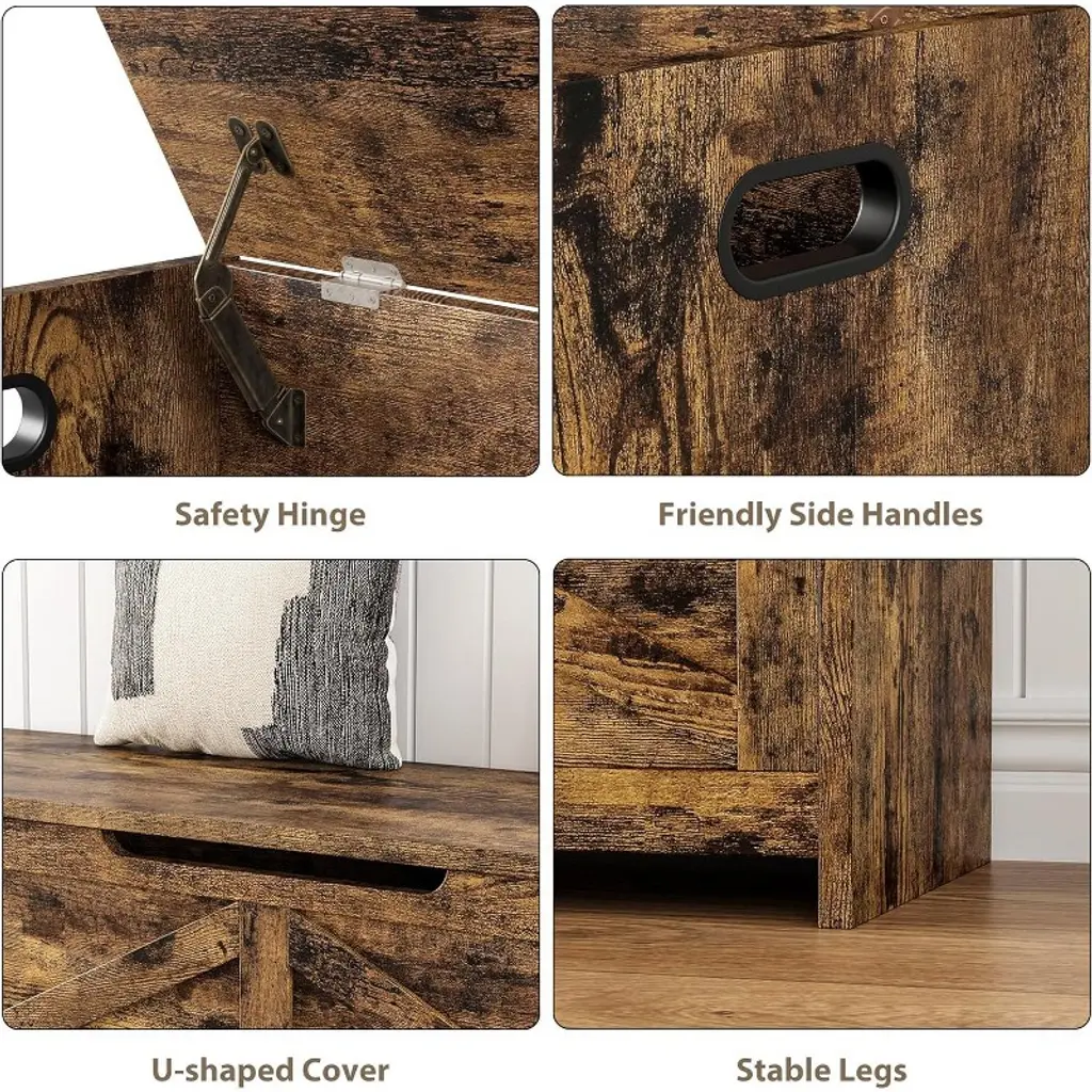 47.2" Wood Storage Bench W/safety Hinges & 20-min Assembly | Toy Chest For Entryway, Living Room & Bedroom