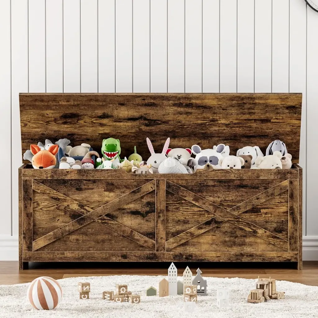 Maximize space and style with this generously sized storage bench (47.2" x 15.75" x 17.72"), designed to organize toys, blankets, shoes, and household essentials while keeping your living area tidy. Built for lasting durability, its robust frame supports up to 300 lbs—perfect for use as seating or a sturdy bench.Blending modern design with versatile function, this wooden chest seamlessly transitions from playroom toy box to entryway shoe organizer or living room seating, making it the ideal storage solution for any bedroom, hallway, or multipurpose space.