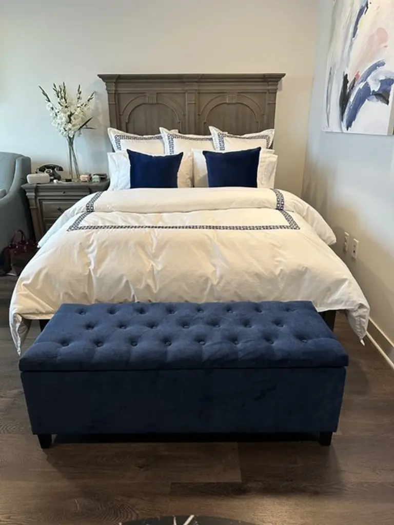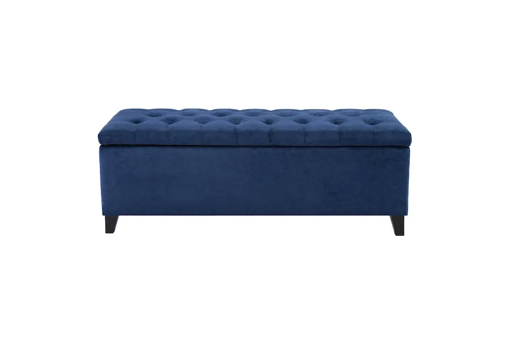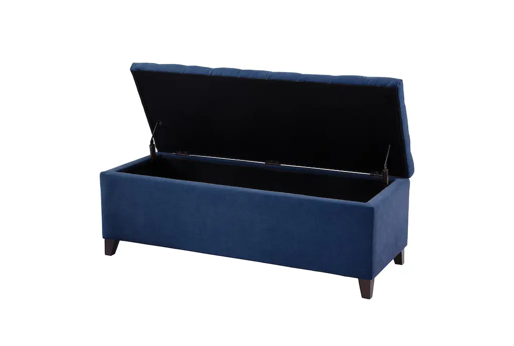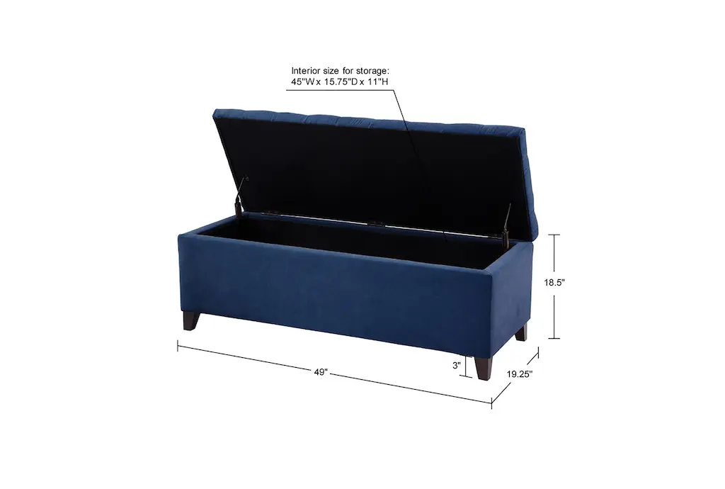 49" Maia Modern Navy Tufted Wood Soft Close Bedroom Storage Bench | Entryway | Shoe Bench