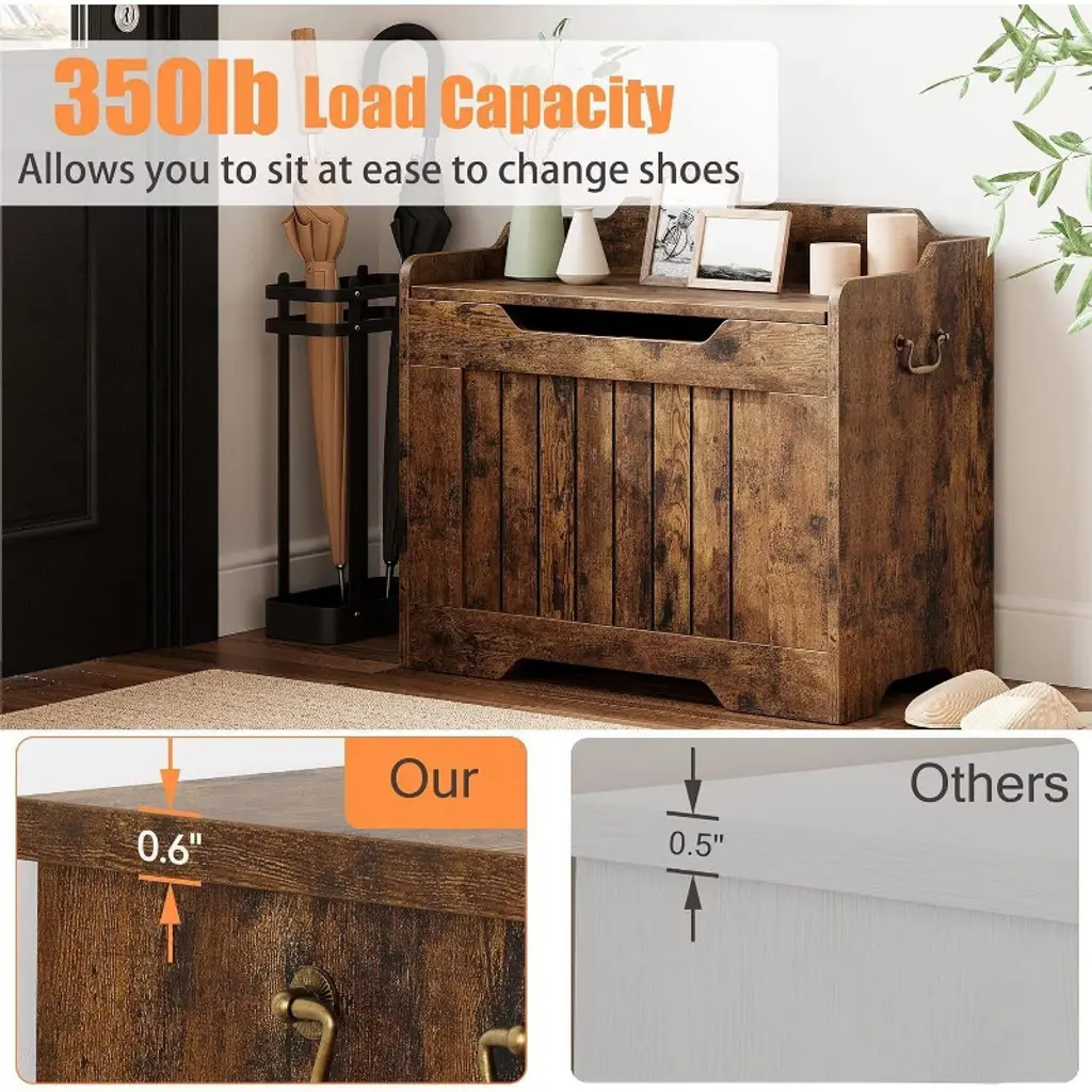 Acekool Decorative Storage Bench, Dual-use Entryway Chest With Safety Hinge, Rustic Finish, 24.8" Vintage Groove Front