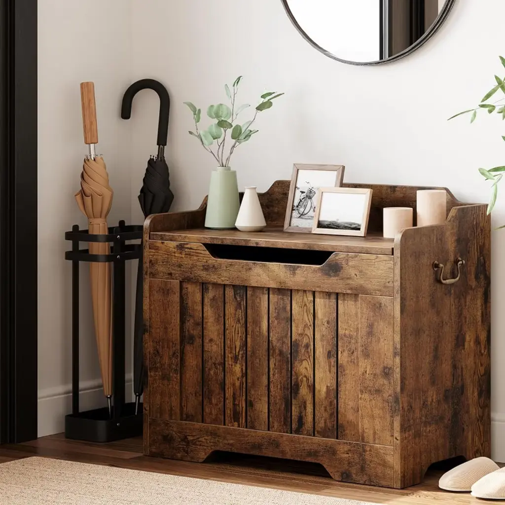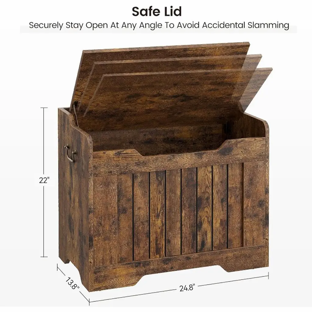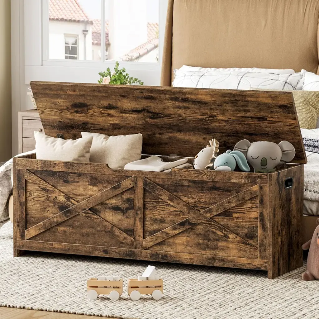 The Acekool decorative storage bench is a practical and stylish solution for organizing your home. Designed for dual use, it works as both a large-capacity storage chest and a sturdy bench—supporting up to 350 lbs with a strong 0.6-inch MDF top. This makes it ideal for storing daily essentials or serving as extra seating in your entryway, bedroom, or living room. Its generously sized interior compartment provides ample space for blankets, toys, shoes, books, or seasonal clothes, keeping clutter at bay. With a versatile design, this bench can be used as a mudroom trunk, a coffee table with storage, or a foot-of-bed organizer. Rustic wood finishes and rattan or decorative front panels blend with a range of decor styles, from modern farmhouse to vintage-inspired interiors. The thoughtful safety hinge and U-shaped cutout prioritize family safety, allowing the lid to open smoothly and stay in place without slamming shut. Side handles make it easy to move from room to room, adapting to changing needs or different occasions. Assembly is straightforward, thanks to clear step-by-step instructions, labeled pieces, and pre-drilled holes. Each bench is carefully checked and packaged for peace of mind during delivery. Available in various sizes and colors including vintage, white, natural, brown, and gray, this decorative storage bench fits seamlessly into spaces of any size. Dimensions and design details are tailored for lasting stability and versatile use, making it a stylish, practical addition to your home.