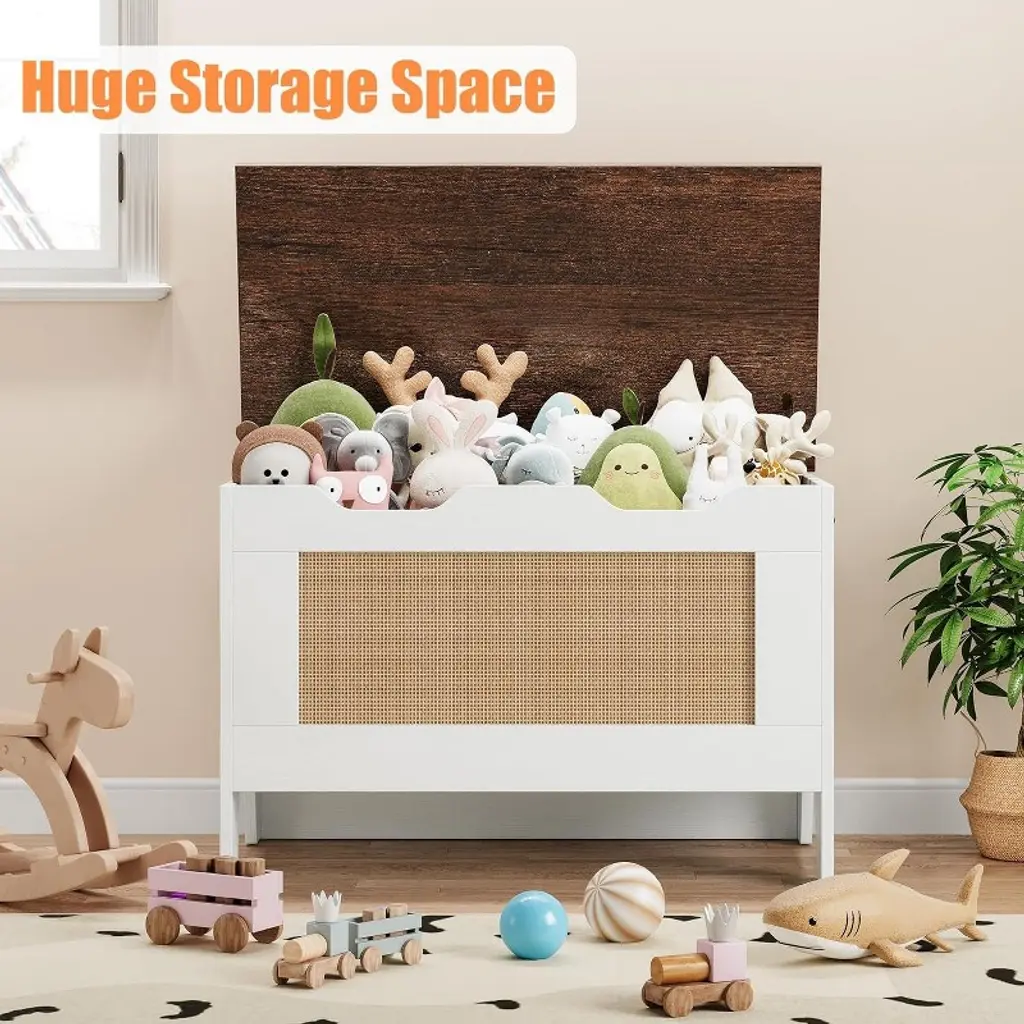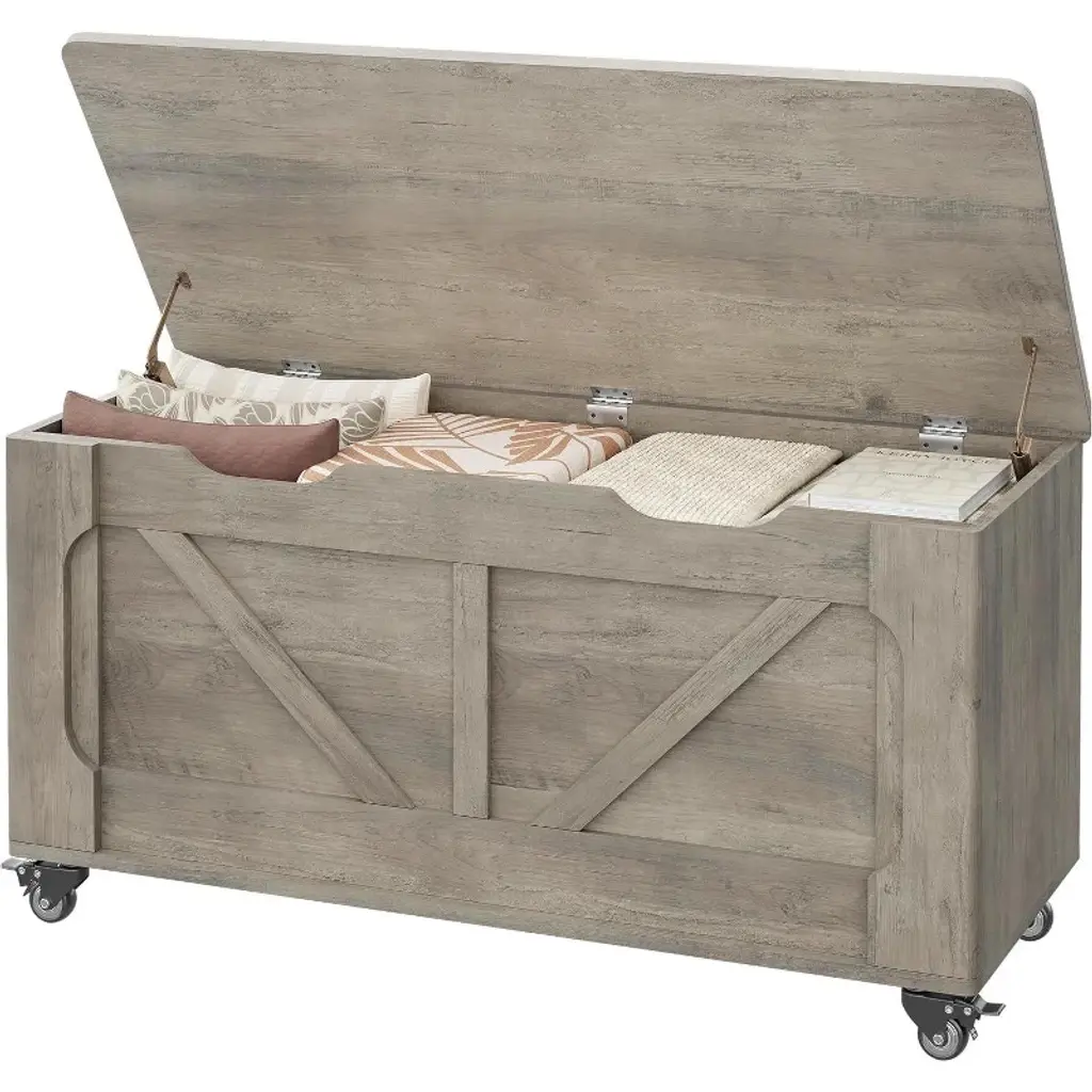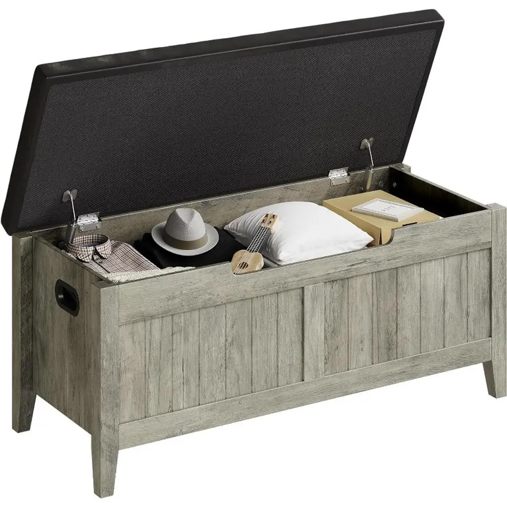 The Acekool decorative storage bench is a practical and stylish solution for organizing your home. Designed for dual use, it works as both a large-capacity storage chest and a sturdy bench—supporting up to 350 lbs with a strong 0.6-inch MDF top. This makes it ideal for storing daily essentials or serving as extra seating in your entryway, bedroom, or living room. Its generously sized interior compartment provides ample space for blankets, toys, shoes, books, or seasonal clothes, keeping clutter at bay. With a versatile design, this bench can be used as a mudroom trunk, a coffee table with storage, or a foot-of-bed organizer. Rustic wood finishes and rattan or decorative front panels blend with a range of decor styles, from modern farmhouse to vintage-inspired interiors. The thoughtful safety hinge and U-shaped cutout prioritize family safety, allowing the lid to open smoothly and stay in place without slamming shut. Side handles make it easy to move from room to room, adapting to changing needs or different occasions. Assembly is straightforward, thanks to clear step-by-step instructions, labeled pieces, and pre-drilled holes. Each bench is carefully checked and packaged for peace of mind during delivery. Available in various sizes and colors including vintage, white, natural, brown, and gray, this decorative storage bench fits seamlessly into spaces of any size. Dimensions and design details are tailored for lasting stability and versatile use, making it a stylish, practical addition to your home.
