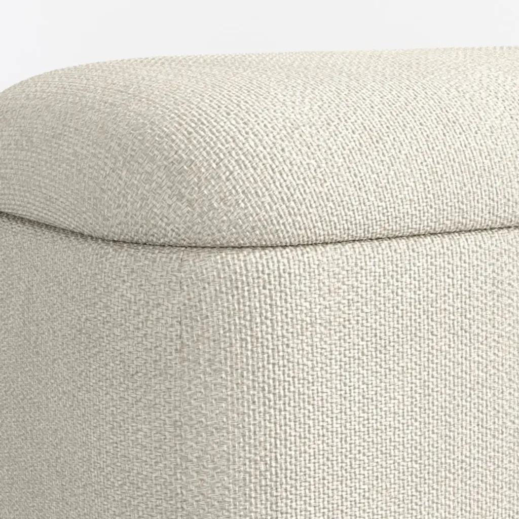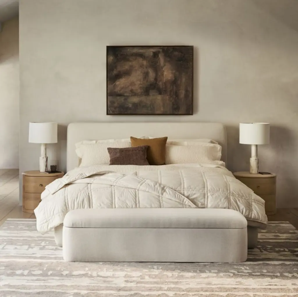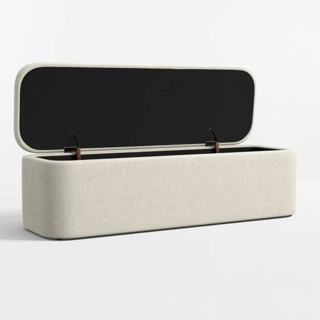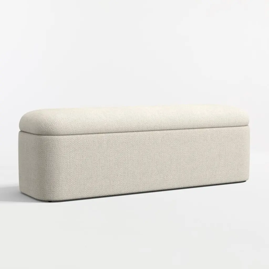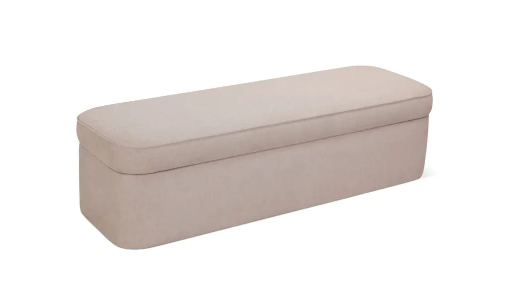 Grace the foot of your Anneli bed with a storage bench designed with the same cozy rounded contours. The bench is fully upholstered and features a plushly padded seat that lifts up to provide easy access to interior storage for stowing blankets, pillows or off-season garments.